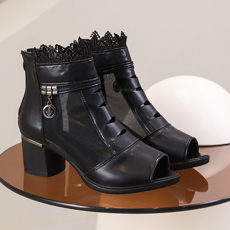 Главная страница > 2024, трансграничные экспортные новые туфли на толстом каблуке с рыбьим ротом, женская обувь, дышащие сандалии с сеткой и вырезами, сандалии на высоком каблуке, сетчатые ботинки