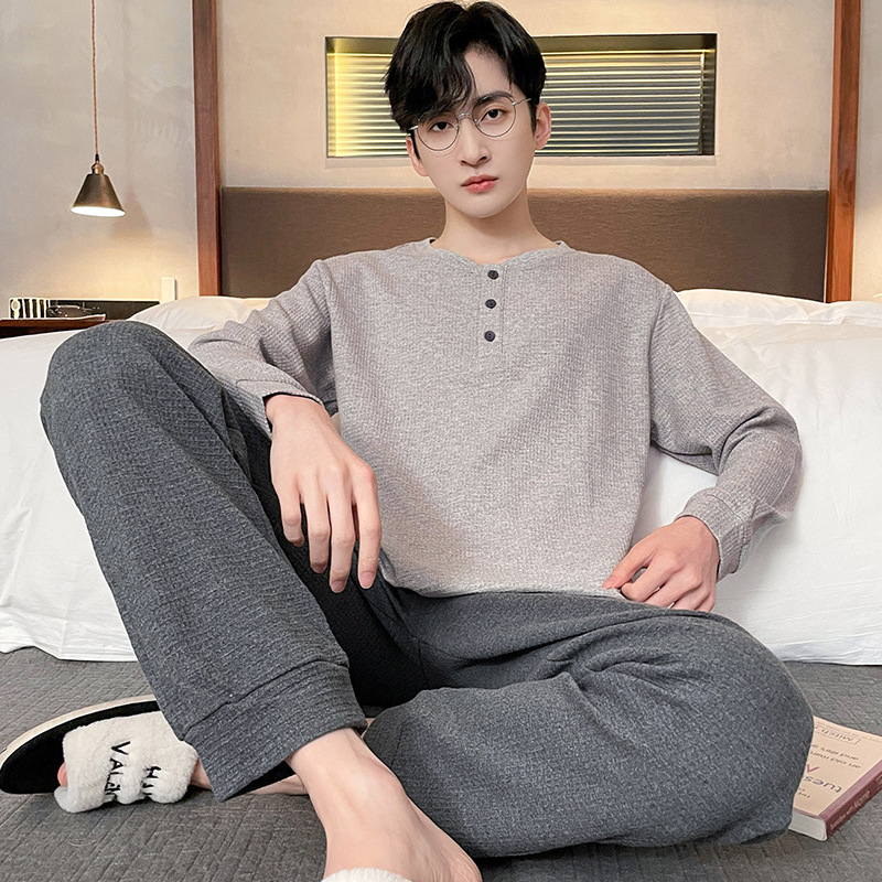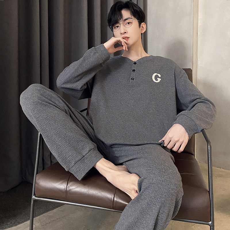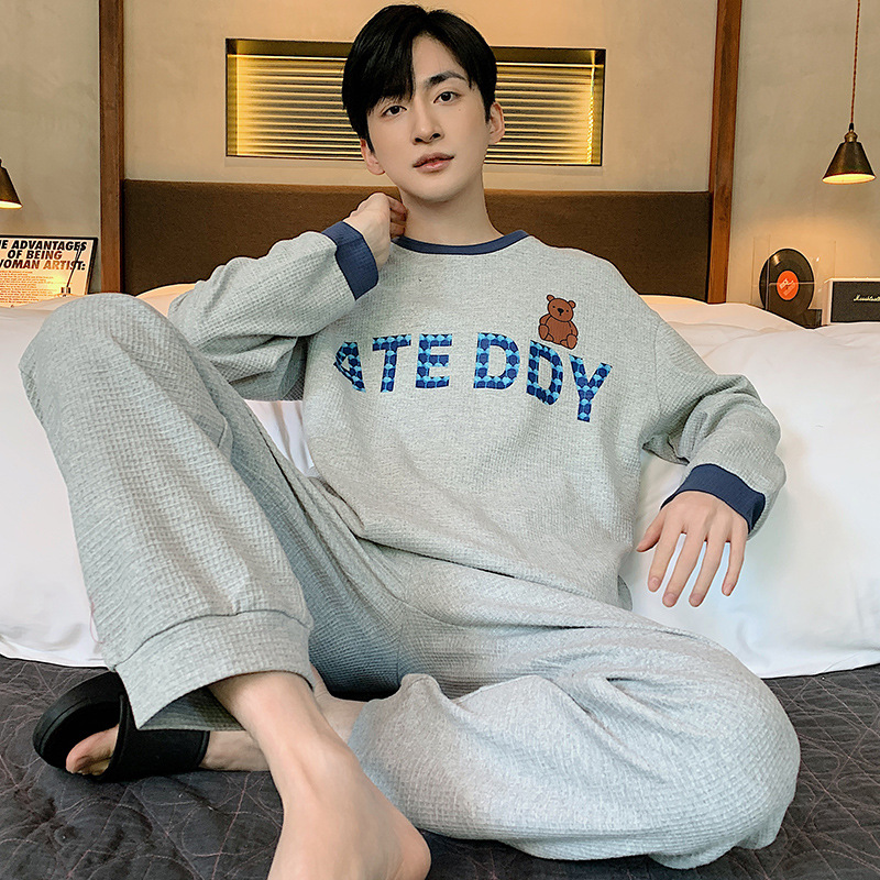 Главная страница > Пижама Мужская весна-осень с длинным рукавом хлопковая Молодежная осенне-зимняя одежда Повседневная Свободная Домашняя одежда больших размеров костюм