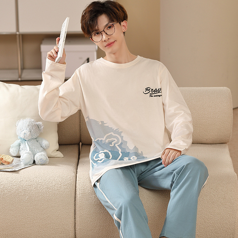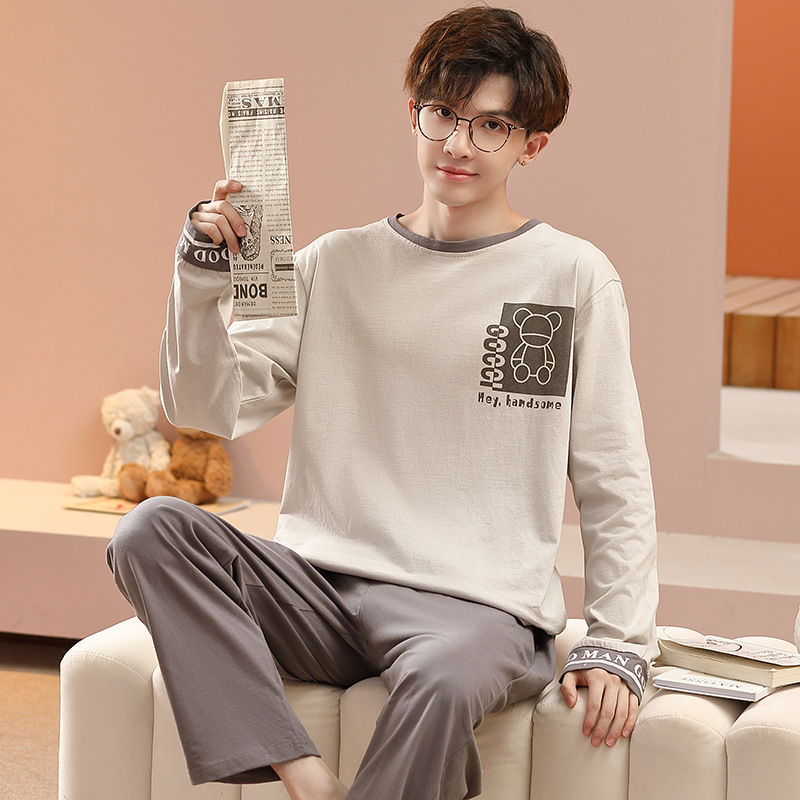 Пижама мужские осенние и зимние новые хлопковые пуловера с длинными рукавами мультфильм плюс большой размер подростковый костюм на улице