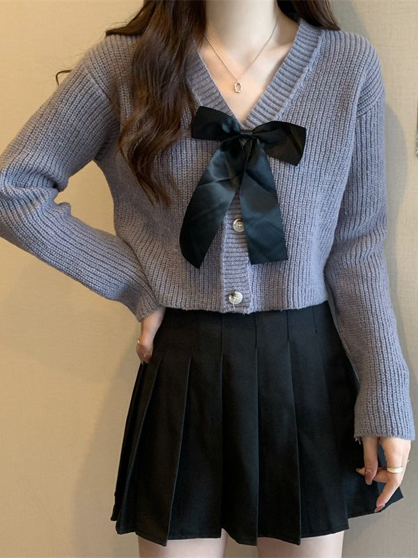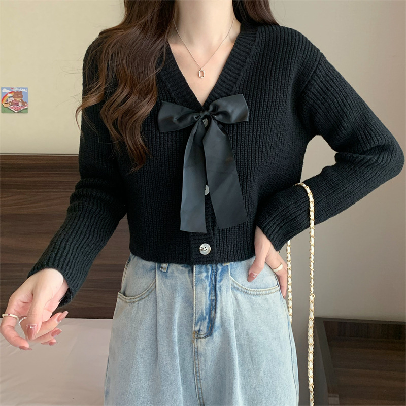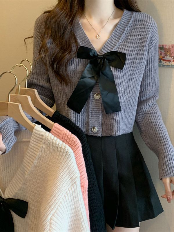 Главная страница > Нежный ветер бант дикий свитер куртка женский осень зима 2025 новый маленький человек короткий свободный вязаный кардиган