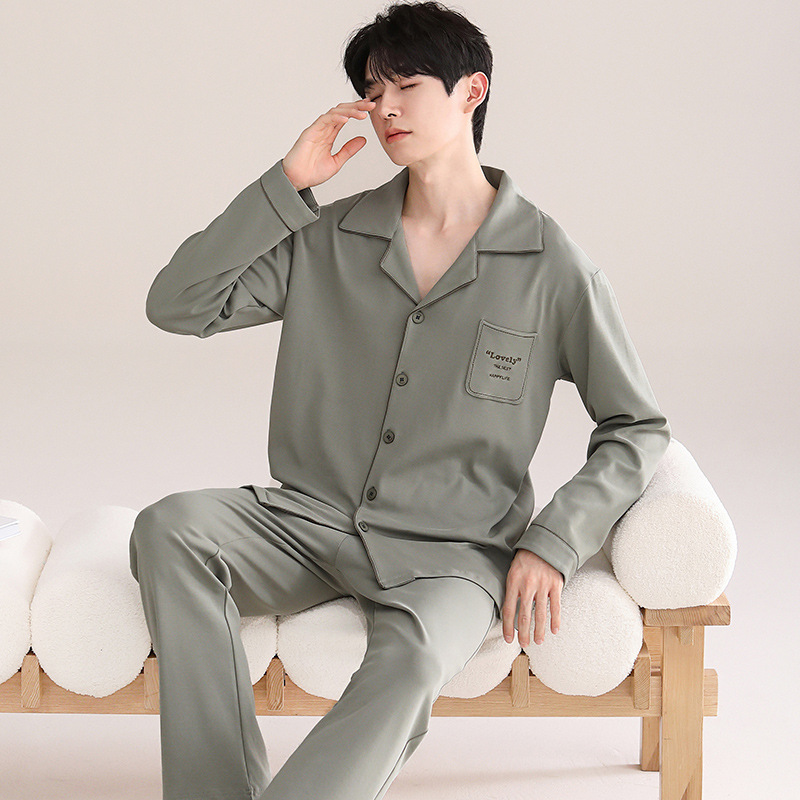 Главная страница > Мужская пижама чистого хлопка, новинка лета 2025 года, тонкий костюм с длинными рукавами больших размеров, свободная, можно носить вне домашней одежды