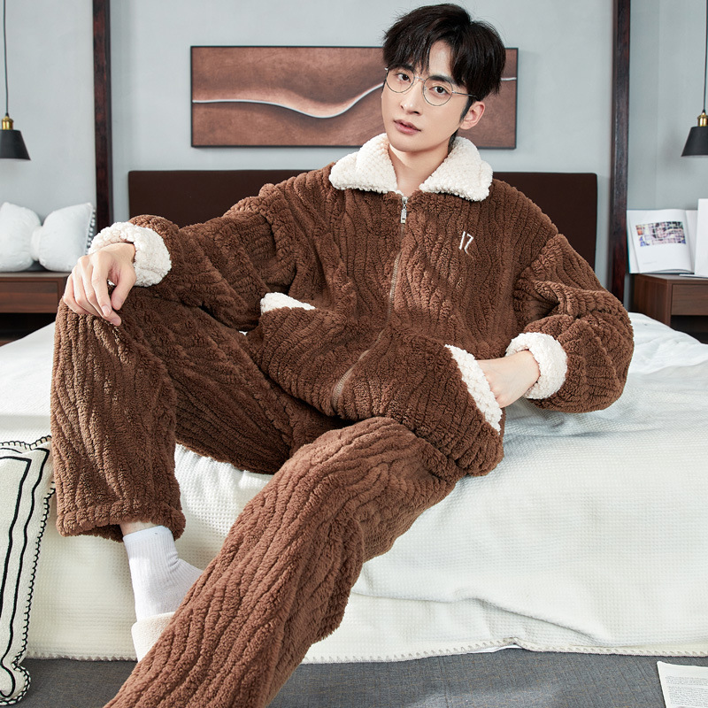 Главная страница > Пижама мужская осенне-зимняя Коралловая флисовая утолщенная больших размеров Молодежная зимняя фланелевая Домашняя одежда костюм