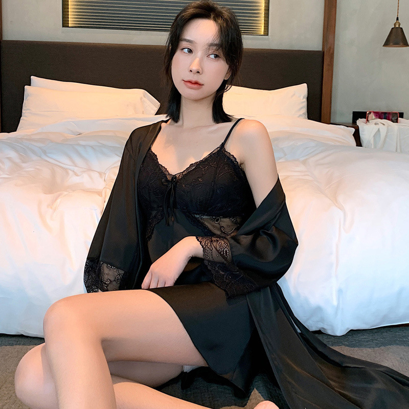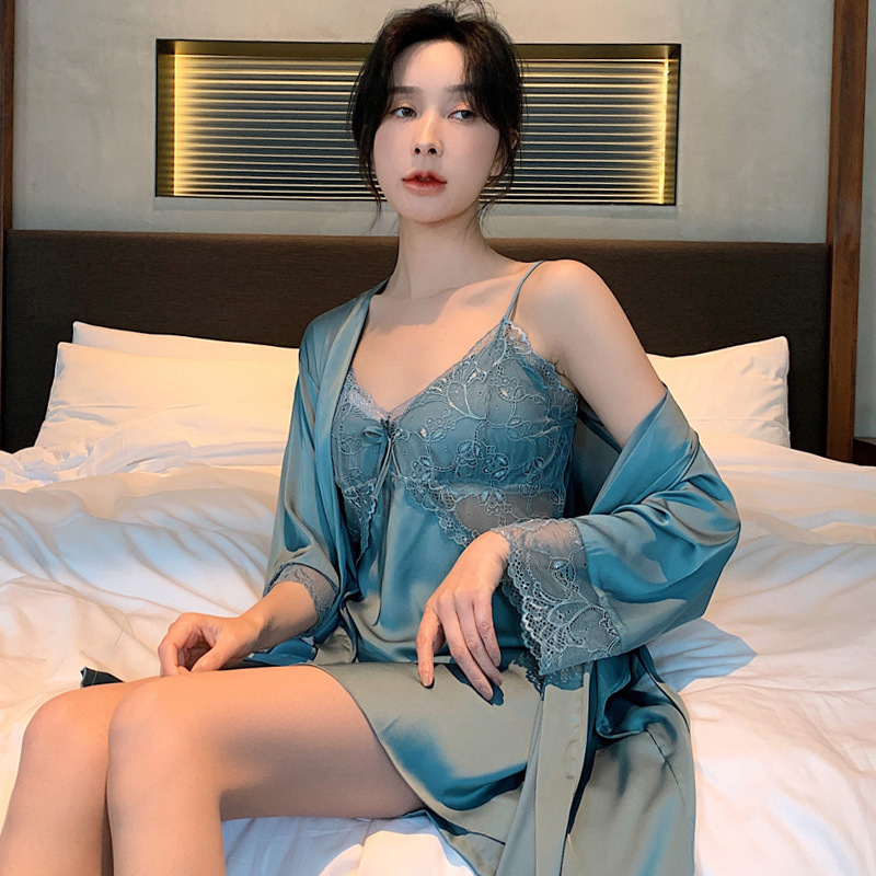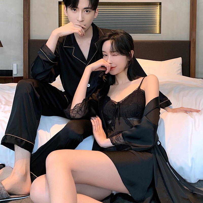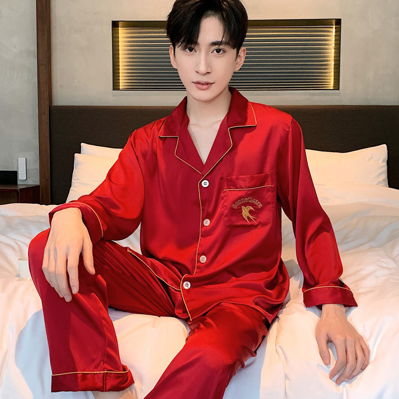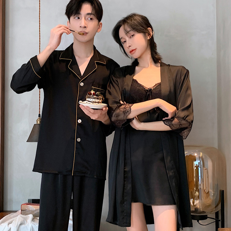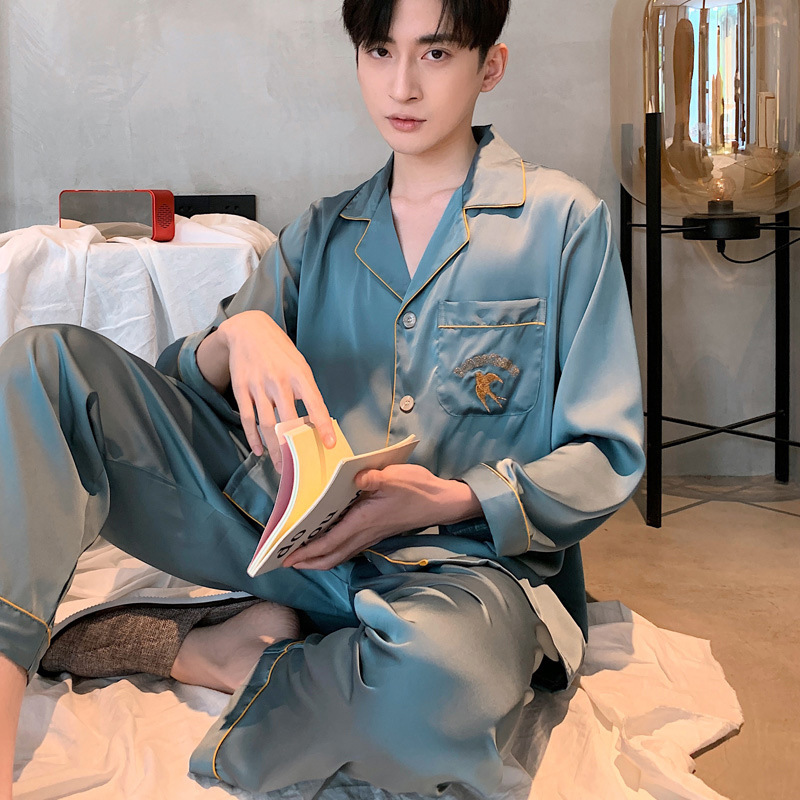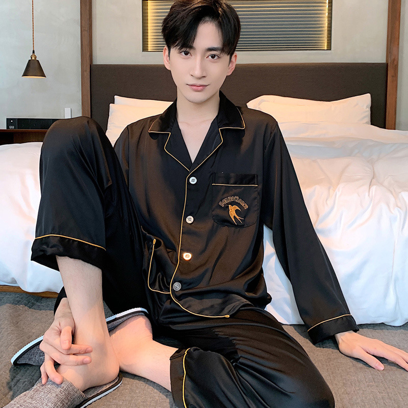 Главная страница > Весенне-осенне-летний женский Шелковый Пижамный костюм с длинными рукавами и пижамой для пар, ночная рубашка из ледяного шелка, Мужская домашняя одежда