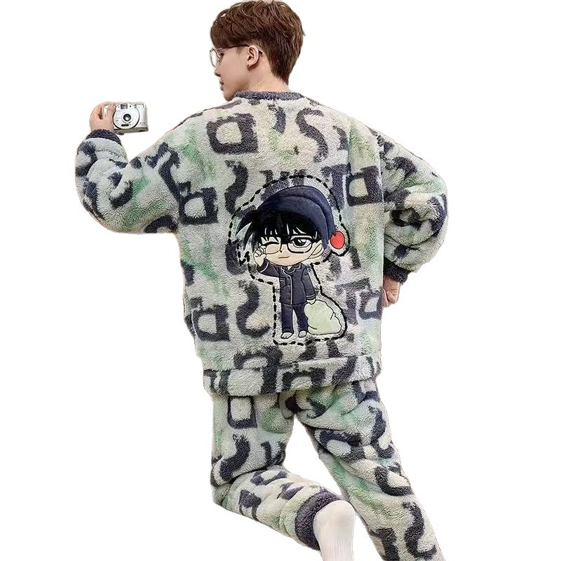 Главная страница > Пижама Мужская зимняя Коралловая флисовая утолщенная теплая Домашняя одежда на флисовой подкладке костюм мультяшный фланелевый пуловер мужской зимний