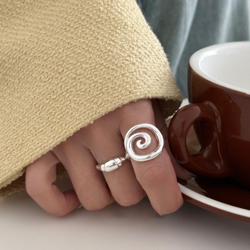 Полая линия улитки кольцо женское индивидуальное волчье кольцо хипстер ins ветер S925 посеребренное открытие фуд-кольца прилив