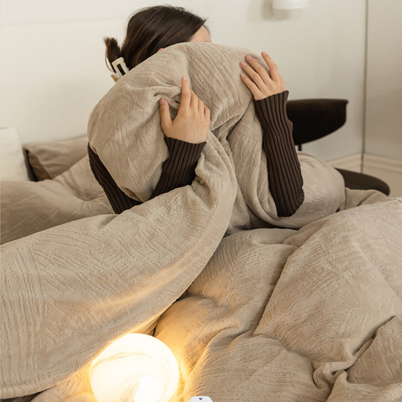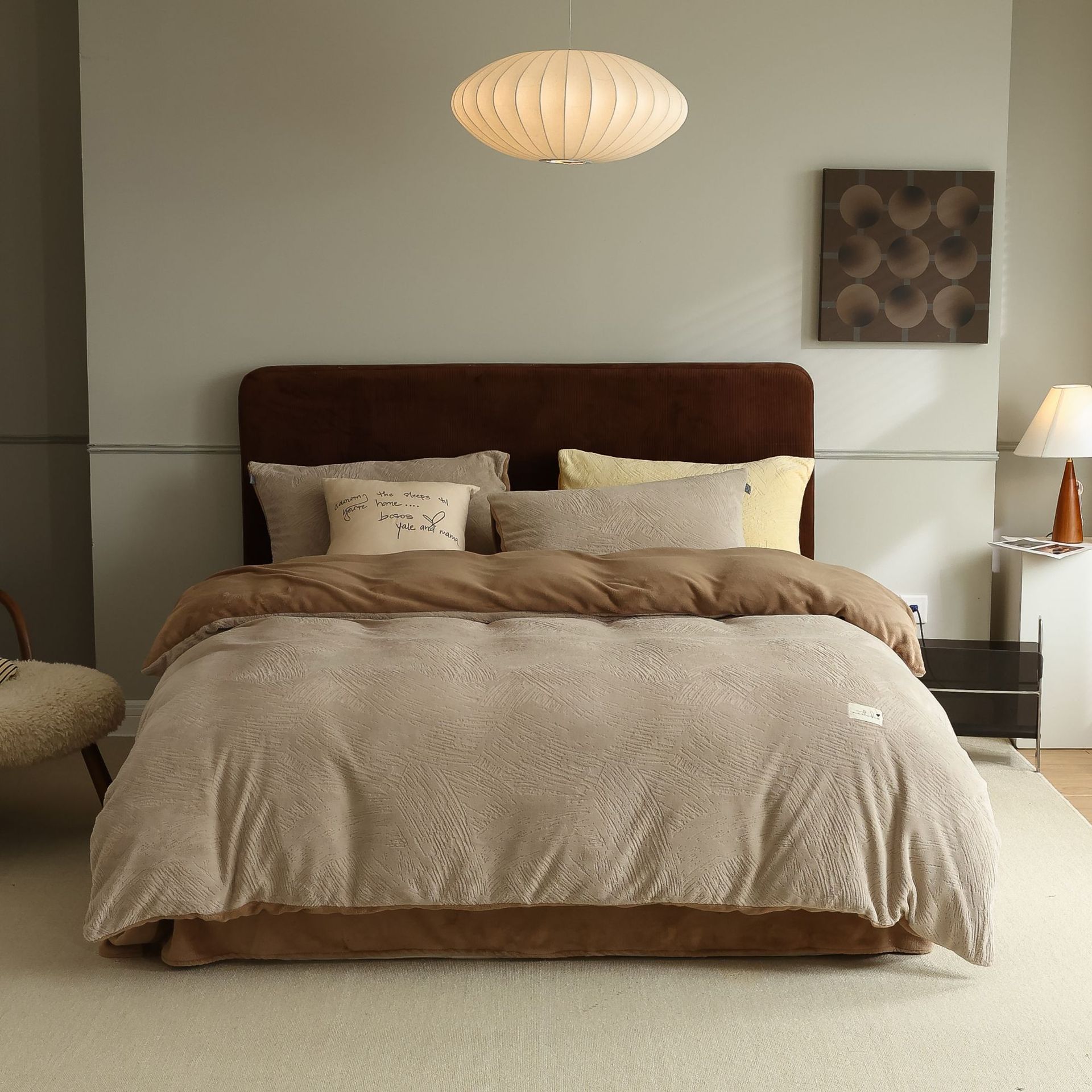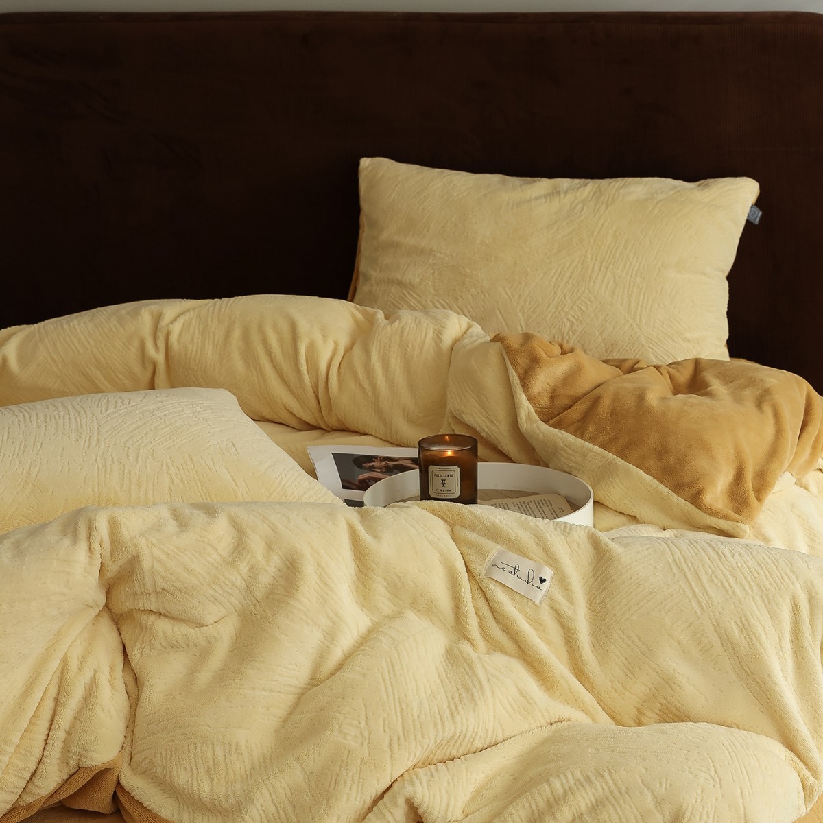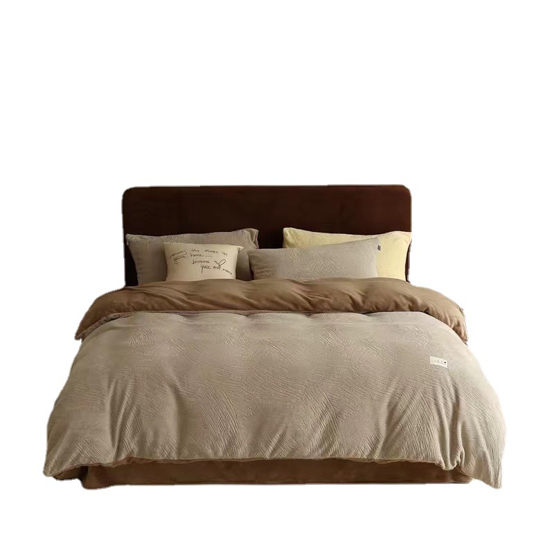 Главная страница > Легкий роскошный стиль, высококачественный молочный бархат, комплект из четырех предметов, зимнее утолщенное двустороннее бархатное Коралловое бархатное пододеяльник, простыня, постельное белье
