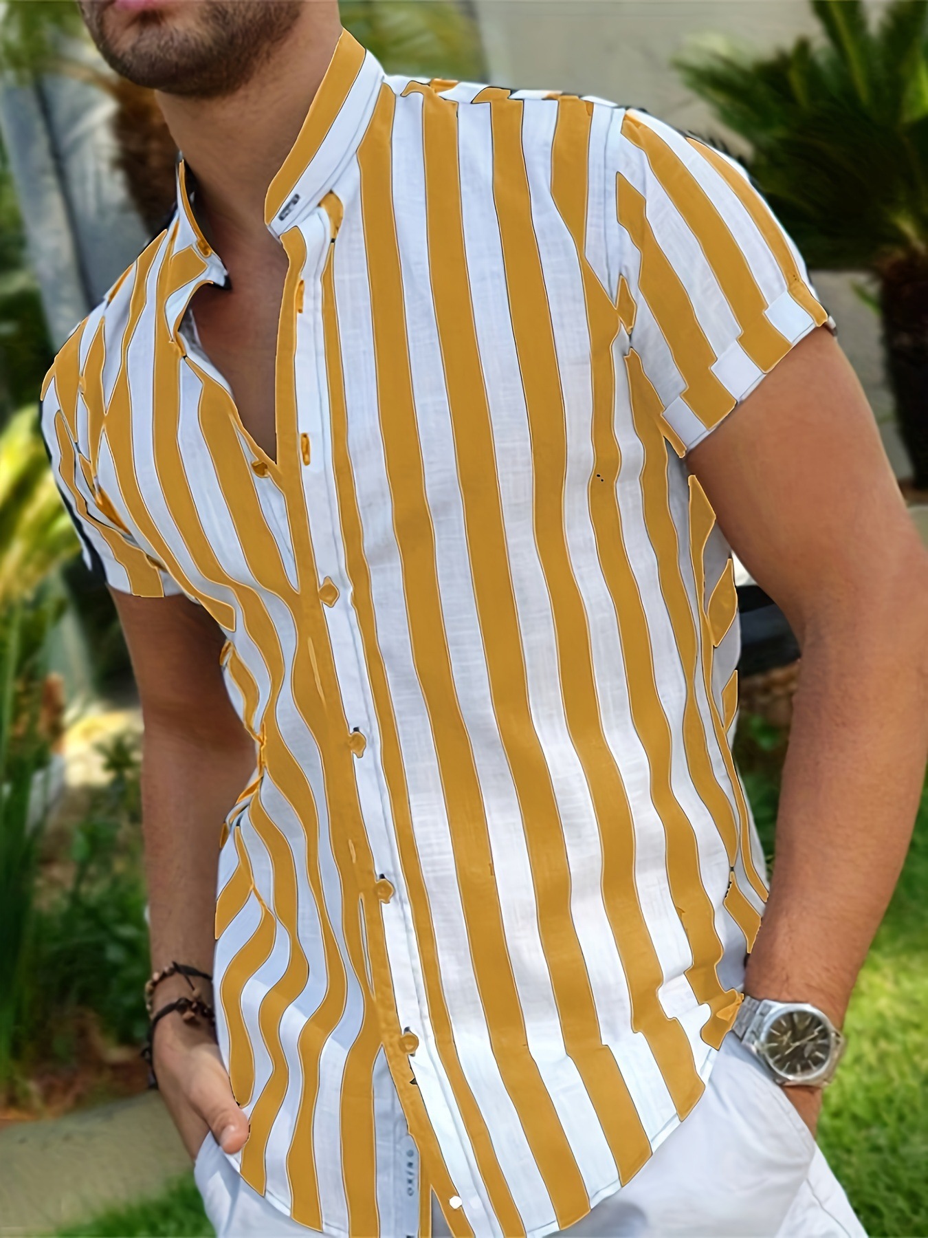 Новая модная мужская рубашка с короткими рукавами и полосатыми лацканами Amazon, весенне-осенняя рубашка, завод-производитель