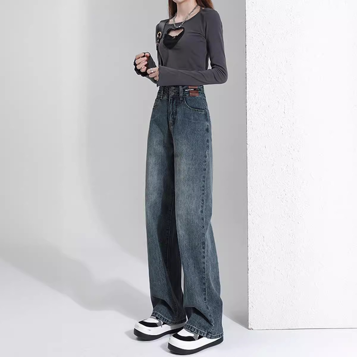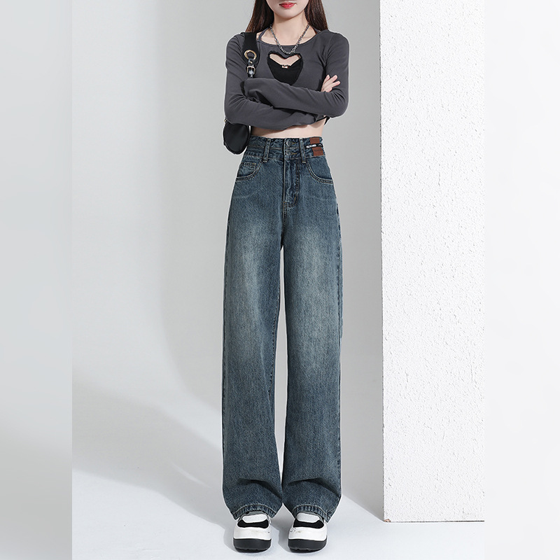 Американские высокие улицы прямые джинсы женская весна осень 2024 новый маленький стиль ретро с высокой талией широкие брюки