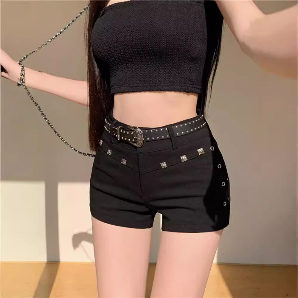 Эластичные джинсы с высокой талией тонкие черные брюки узкие шорты прямые широкие шорты шорты шорты женские летние 2023 новый стиль