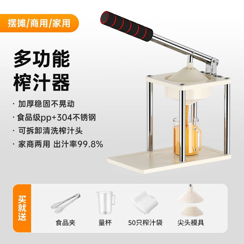 Одномодовая/плоская соковыжималка из нержавеющей стали 304 (в комплекте мерный стакан на 300 мл + 50 фильтровых мешков + зажим для продуктов)₮