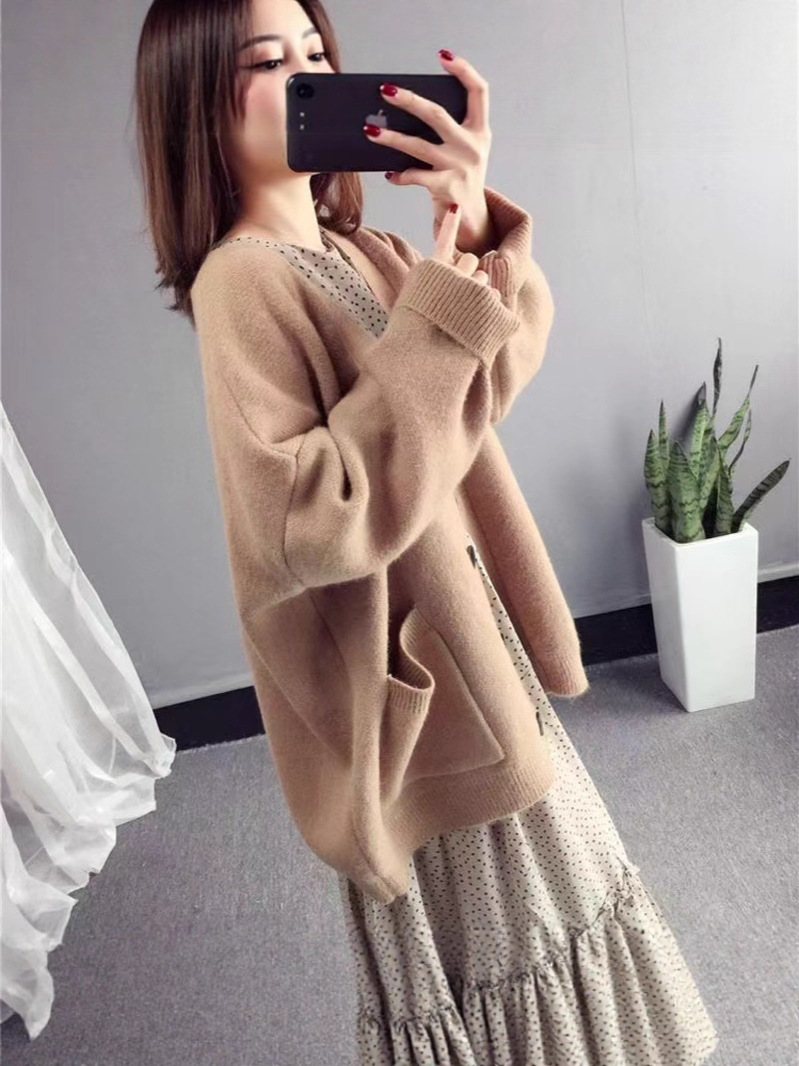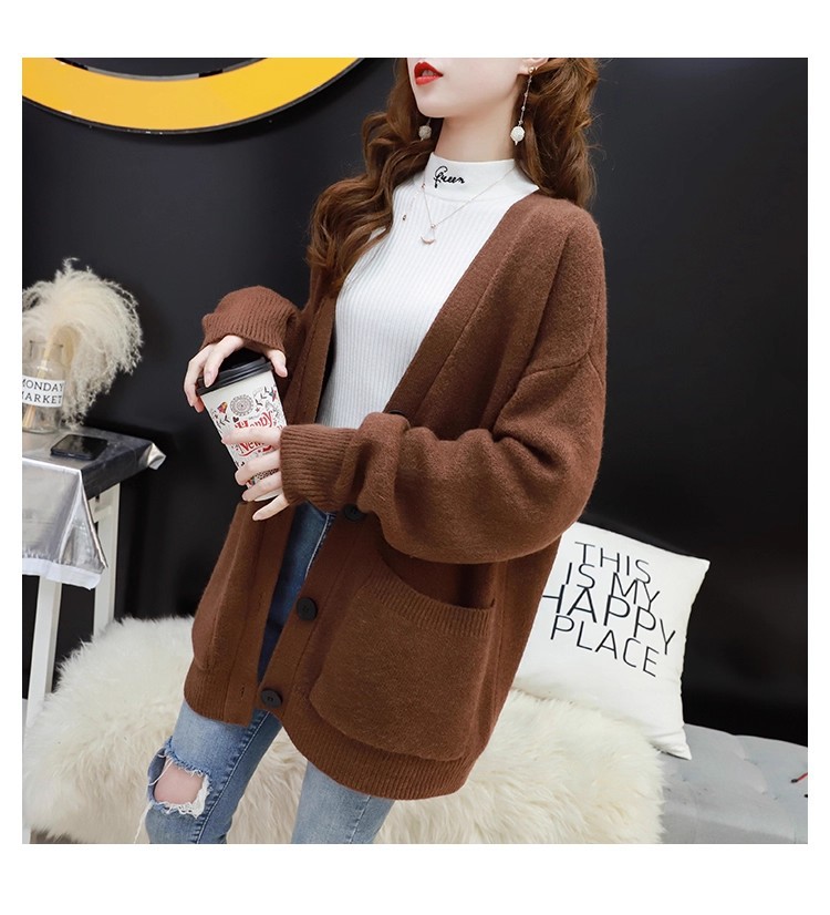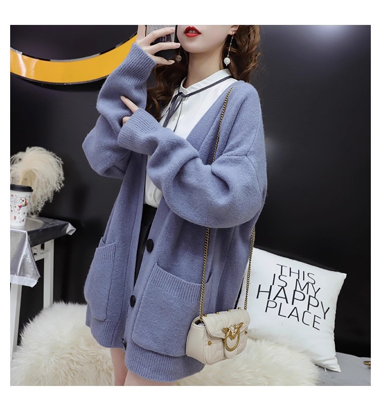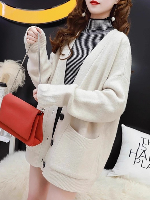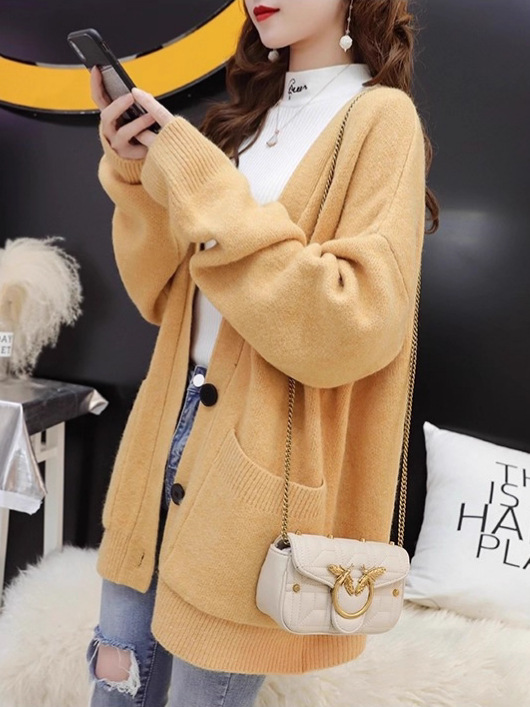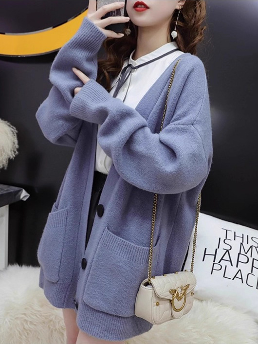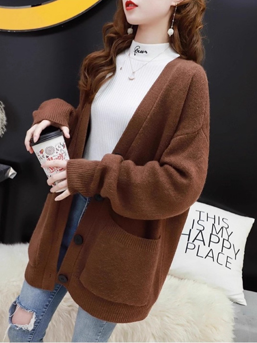 Главная страница > Женский свитер в стиле ленивого шика, осень-зима 2025, новый популярный топ, свободный, стройнящий, универсальный, с V-образным вырезом, вязаный кардиган