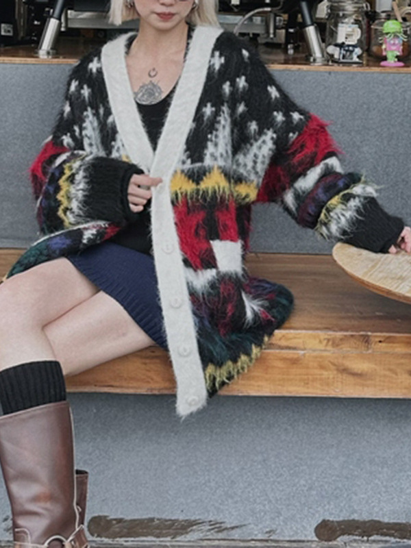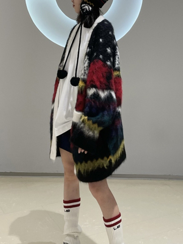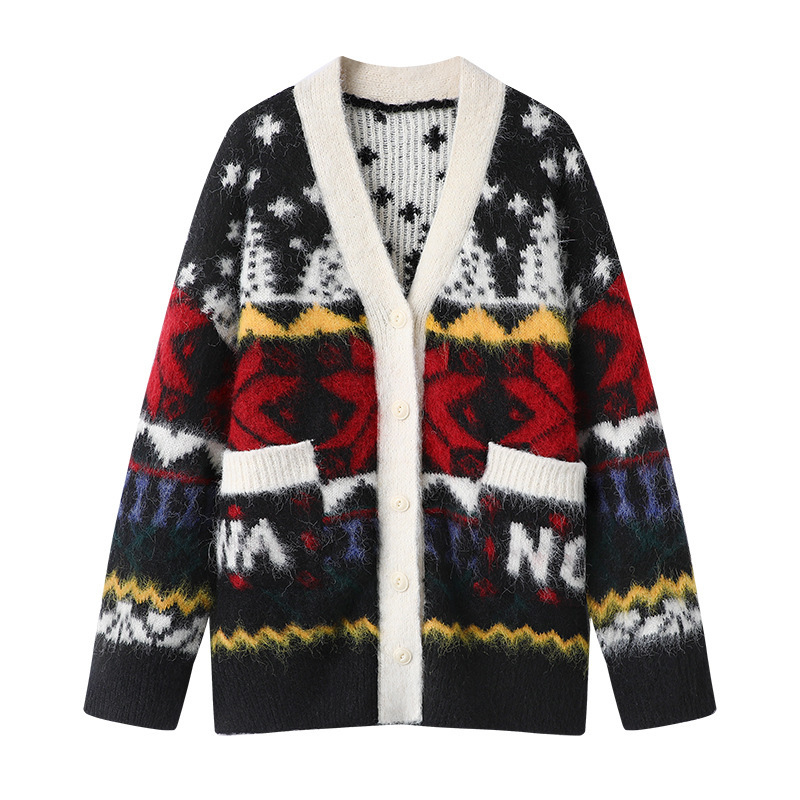 Главная страница > Mencius White Deer той же зимней 2024 новой женской ретро дикий свободный вязаный кардиган рождественский свитер