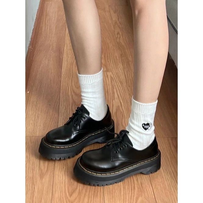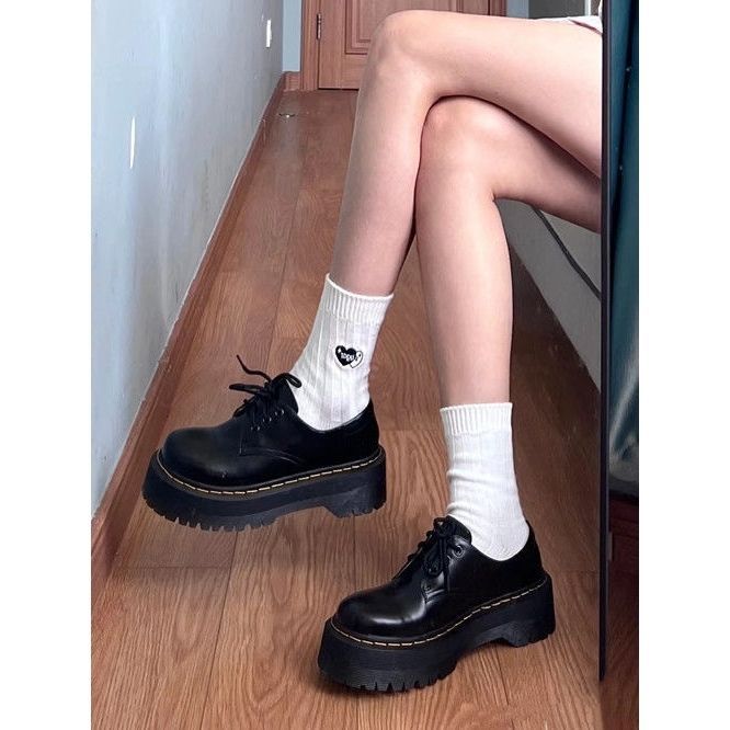 Главная страница > Ретро английский стиль толстые подошвы, высокие маленькие кожаные туфли 2025 новые шнуровки сплошной цвет простой Мартин обувь женская