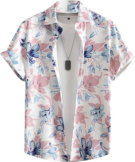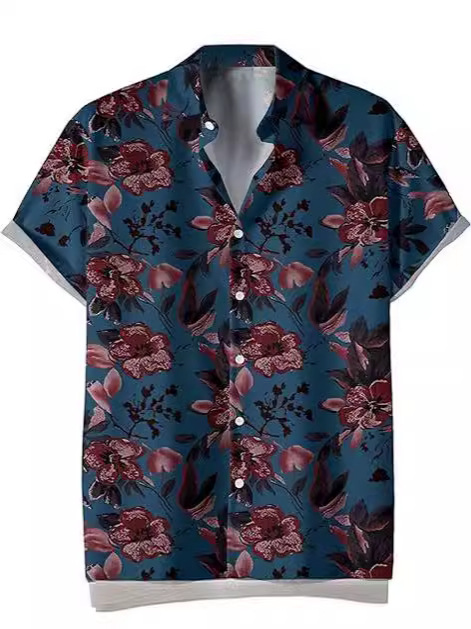 Главная страница > 2024 новый мужской тропический принт с пряжкой с короткими рукавами и воротником Гавайские рубашки для отдыха