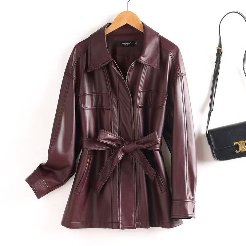 Главная страница > Женская короткая куртка из натуральной кожи, новинка 2025 года, весенне-осенняя мотоциклетная куртка из овчины в стиле Сонг Цзя