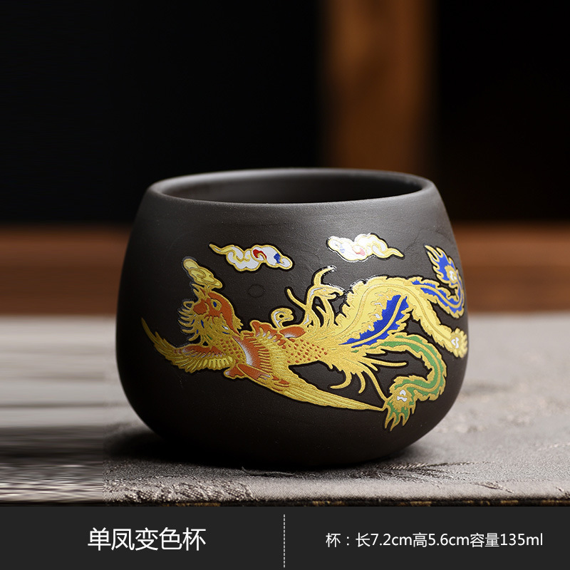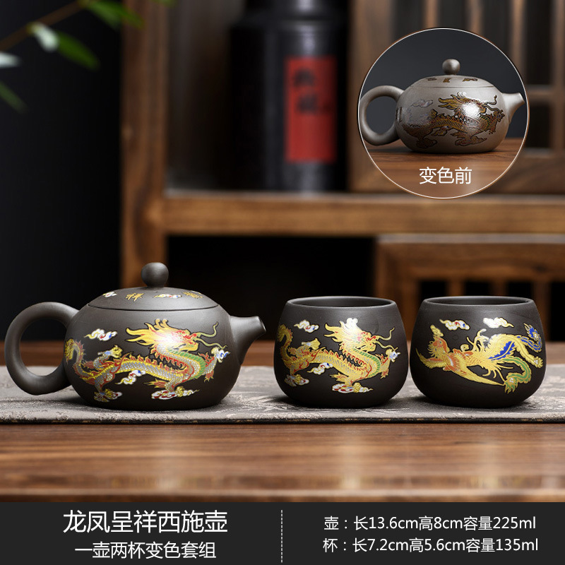 Горшок Fengming Dragon и Phoenix, меняющий цвет фиолетового песка — черный горшок с шестью чашками (подарочная коробка)