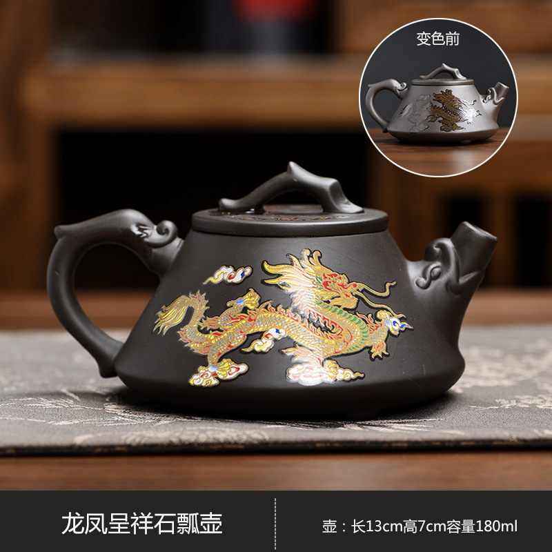 Бай Cai Zisha, меняющий цвет Fengming Dragon и Phoenix Pot — черный (безопасная пена)