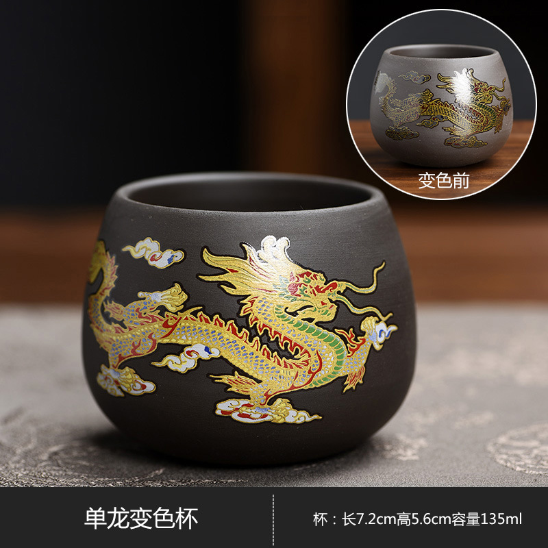 Каменный ковш из фиолетовой глины, меняющий цвет, фэнтинговый дракон и горшок для феникса — черный (подарочная коробка)