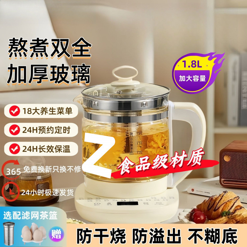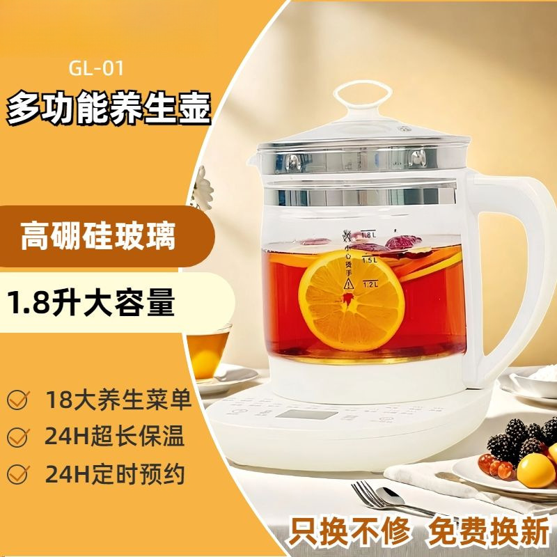 Главная страница > Полностью автоматический многофункциональный горшок для здоровья, бытовой чайник большой емкости 1,8 л, термоизоляционный стеклянный ароматный чайник для чая, яйца на пару