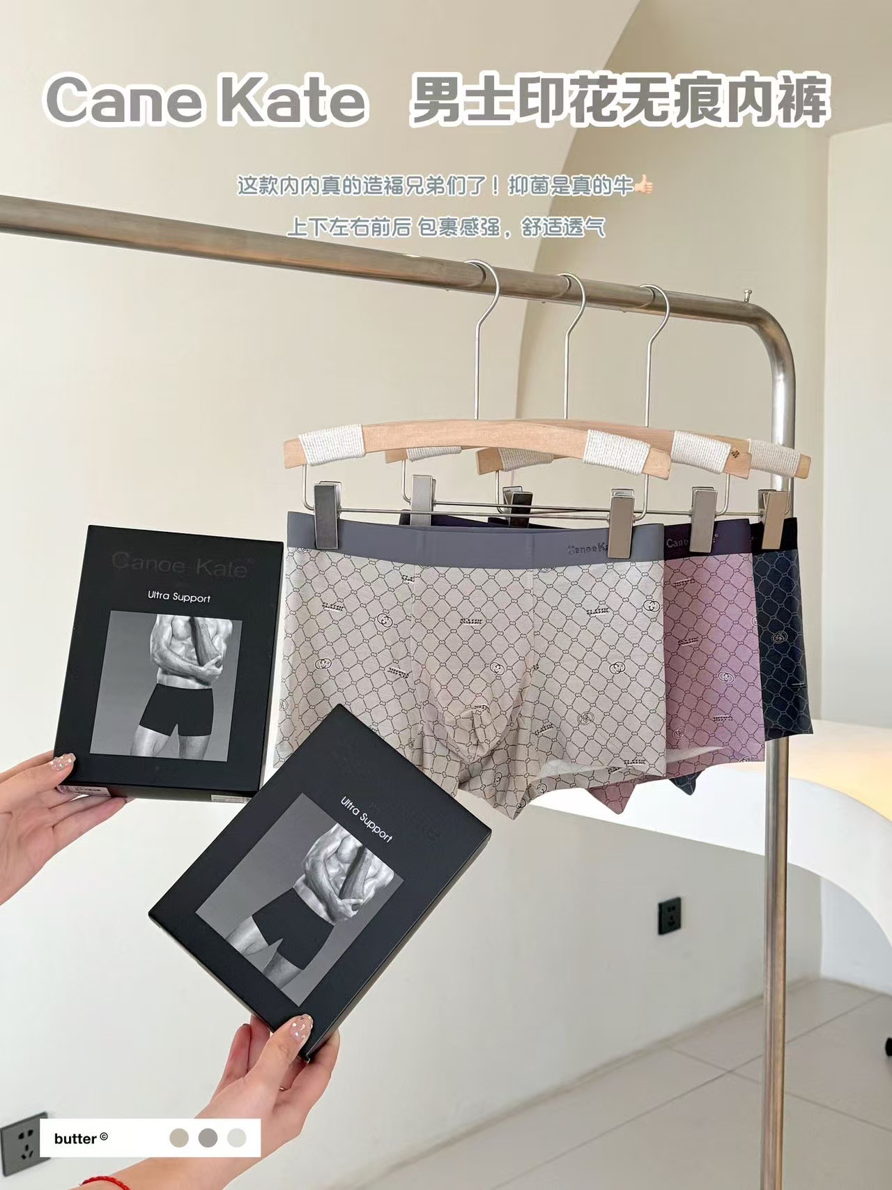 Мужское нижнее белье из модала высокого качества, трусы-боксеры Cane Kate, удобные бесшовные с принтом, набор из 3 штук в коробке