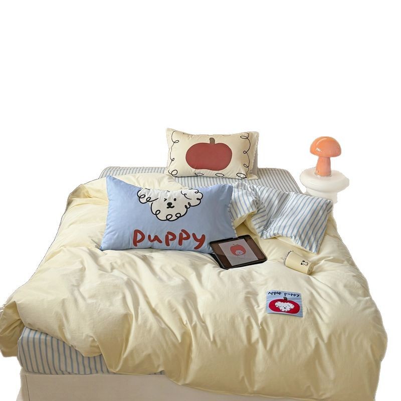 Хлопок типа А Хлопок из четырех частей новый простой свежий мультяшный полотенце вышитый студенческое общежитие постельное белье
