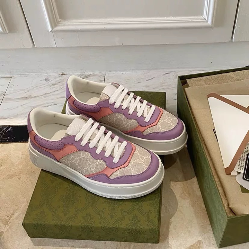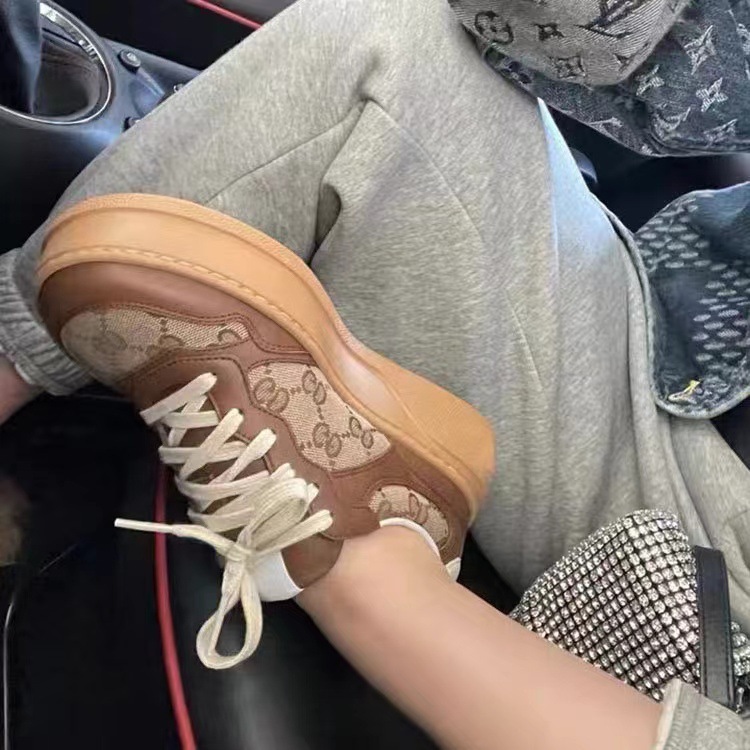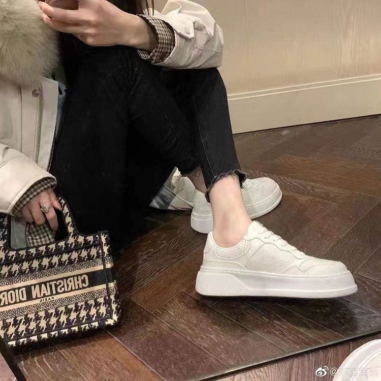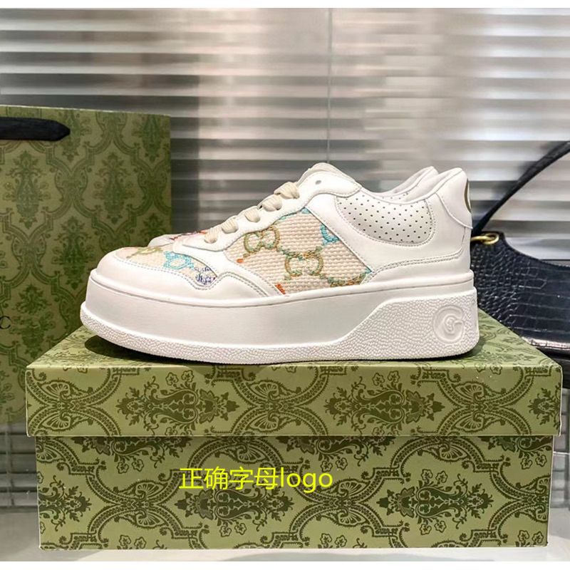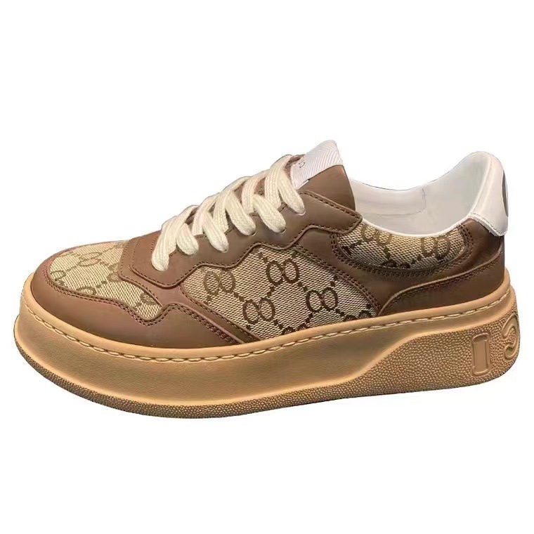 Главная страница > Высокая версия двойной буквы G бисквитные туфли классический принт маленькие белые туфли с толстым подошвой увеличены ретро повседневные кроссовки для мужчин и женщин