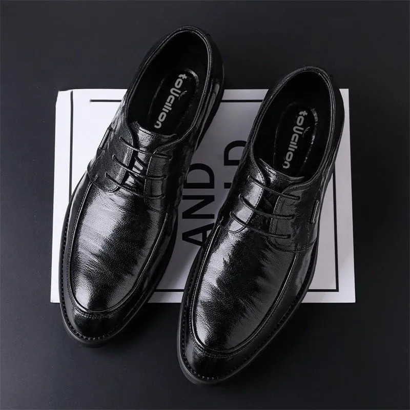 Главная страница > Мужские кожаные туфли, новые деловые формальные повседневные весенне-осенние дышащие мужские свадебные туфли для жениха в британском корейском стиле с острым носком