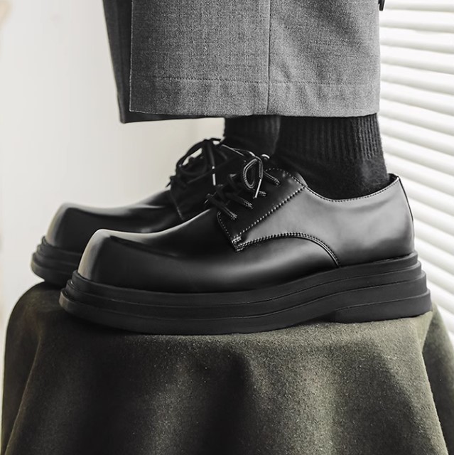 Главная страница > Кожаные туфли с квадратным носком, мужские воловьей кожи 2023, Новая высококачественная толстая подошва, увеличенная Корейская ниша, черные туфли дерби для мужчин