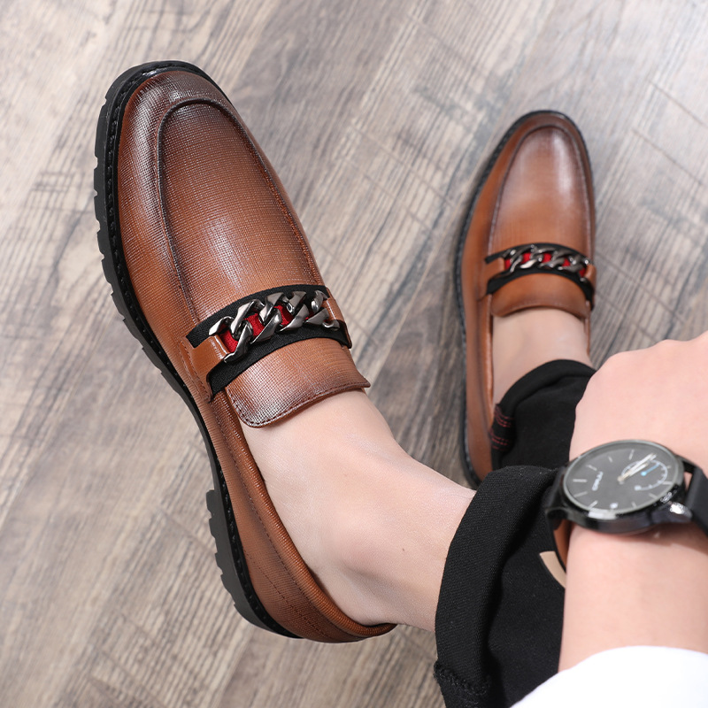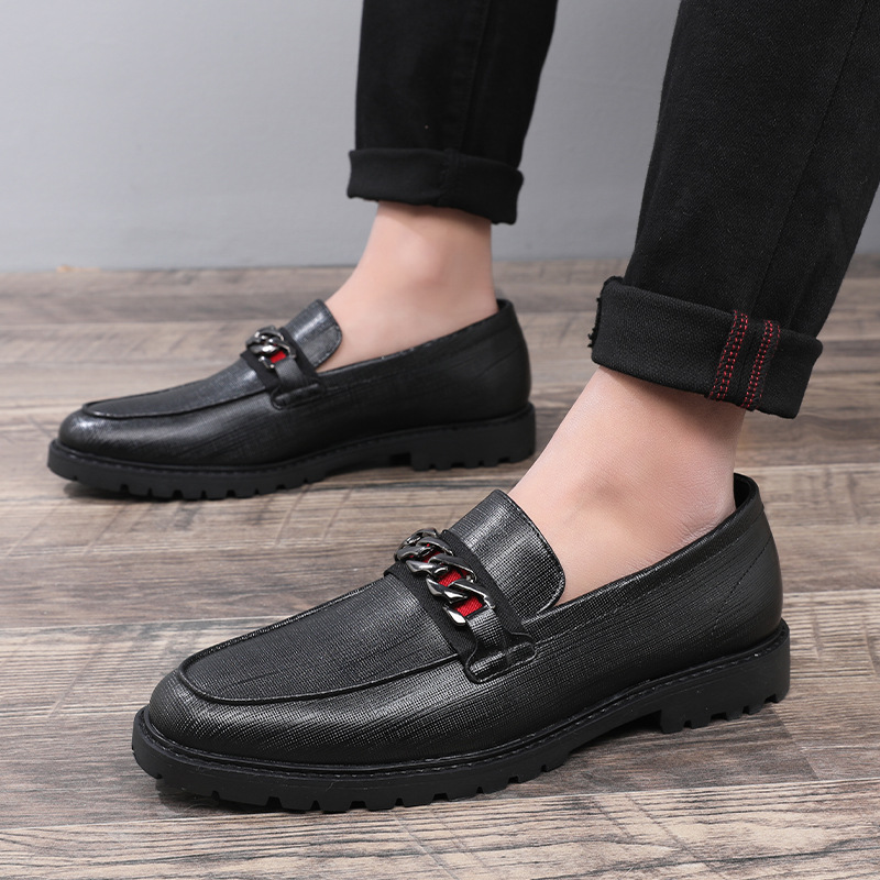 Главная страница > Кожаная обувь мужская повседневная обувь без шнуровки в Корейском стиле Британская кожаная обувь с острым носком Мужская обувь стилист волос Модная фабрика в наличии поколение волос
