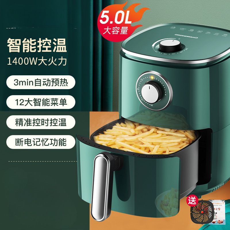 [Интеллектуальный контроль температуры/зеленый 5,0 л] 12 основных интеллектуальных меню + отсутствие масляного дыма + сковорода с антипригарным покрытием + 360°