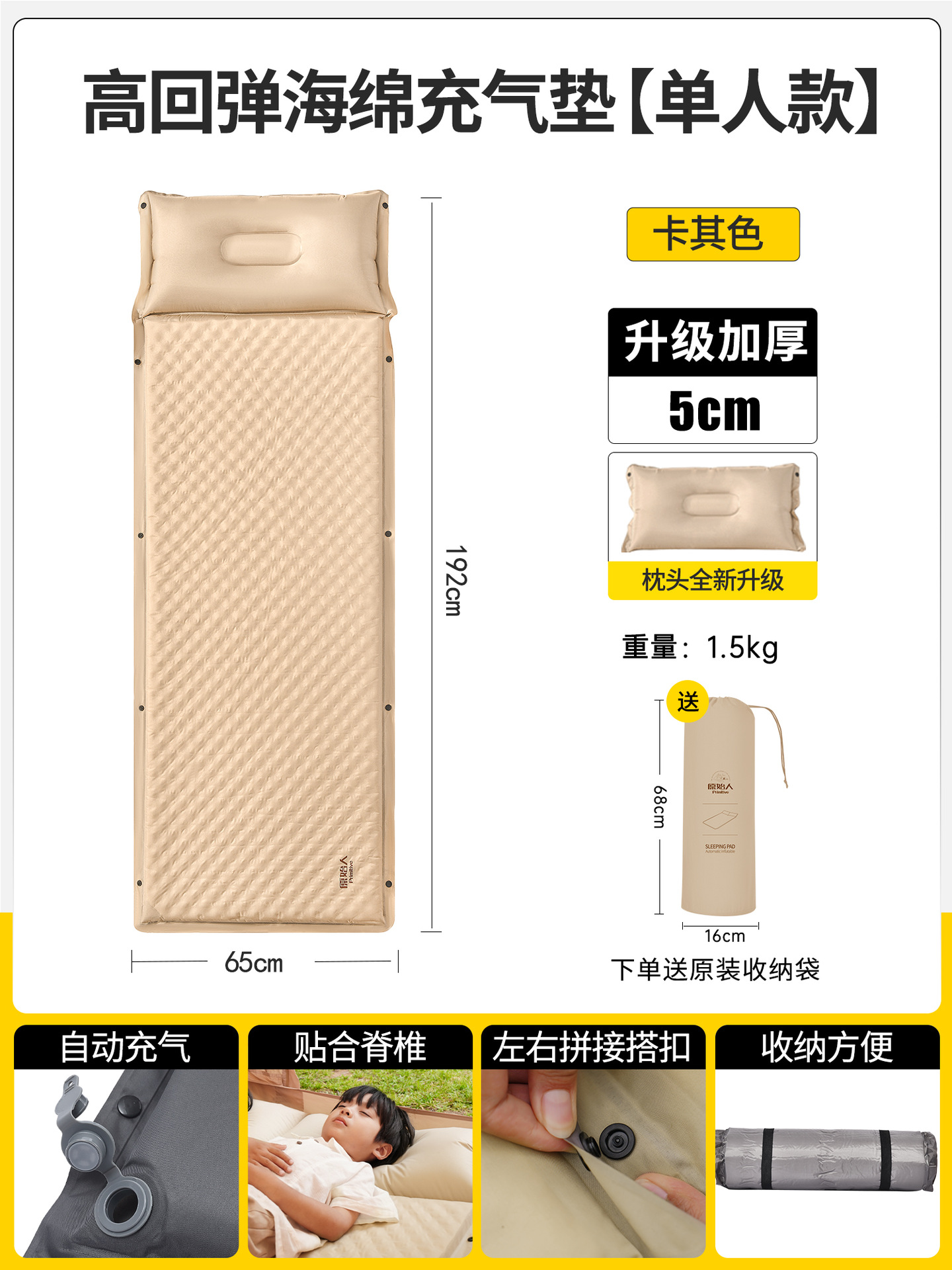 [10 см расширенный светло-хаки] Автоматический надувной матрас 5 см - двойной размер