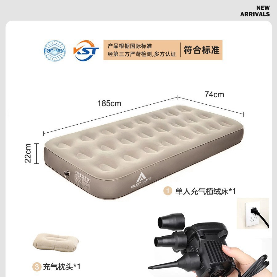 [185*72*22 см] Одинарная флокированная надувная кровать + бытовой насос + надувная подушка из молочного шелка + сумка для хранения (гарантия 1 месяц)