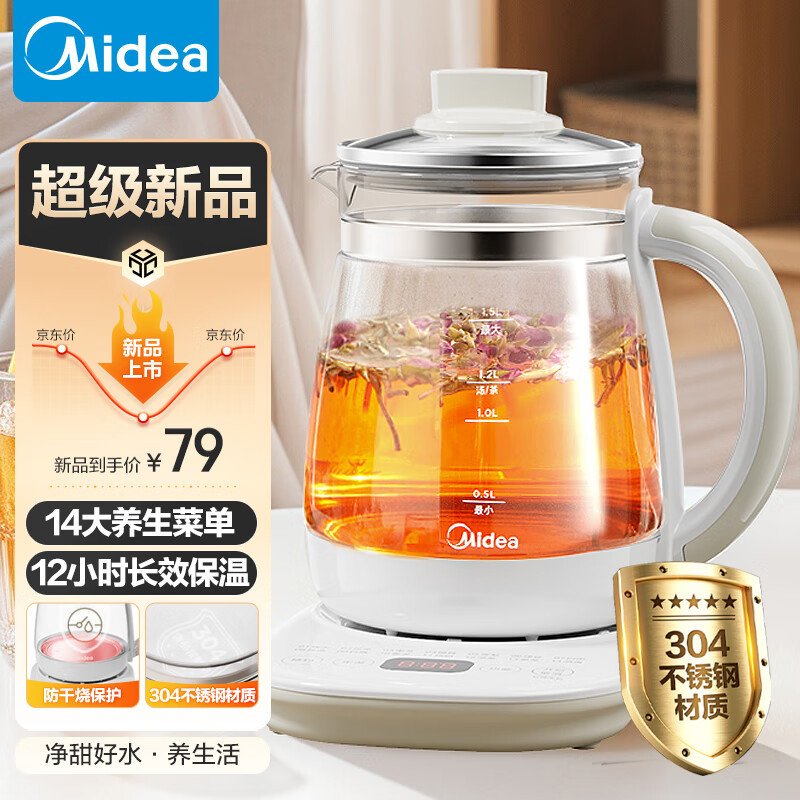 Главная страница > Горшок для здоровья Midea, 1,5 л, чайник, чайник, 12 часов, электрический чайник с постоянной температурой, цветочный чайник, многофункциональный 316