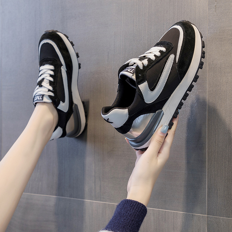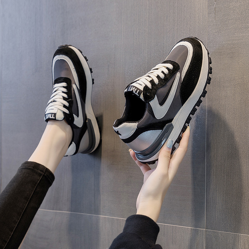 Главная страница > 2024 осень/зима, новые женские туфли Waffle Agan, черные универсальные повседневные кроссовки на толстой подошве, обувь для похудения из натуральной кожи.
