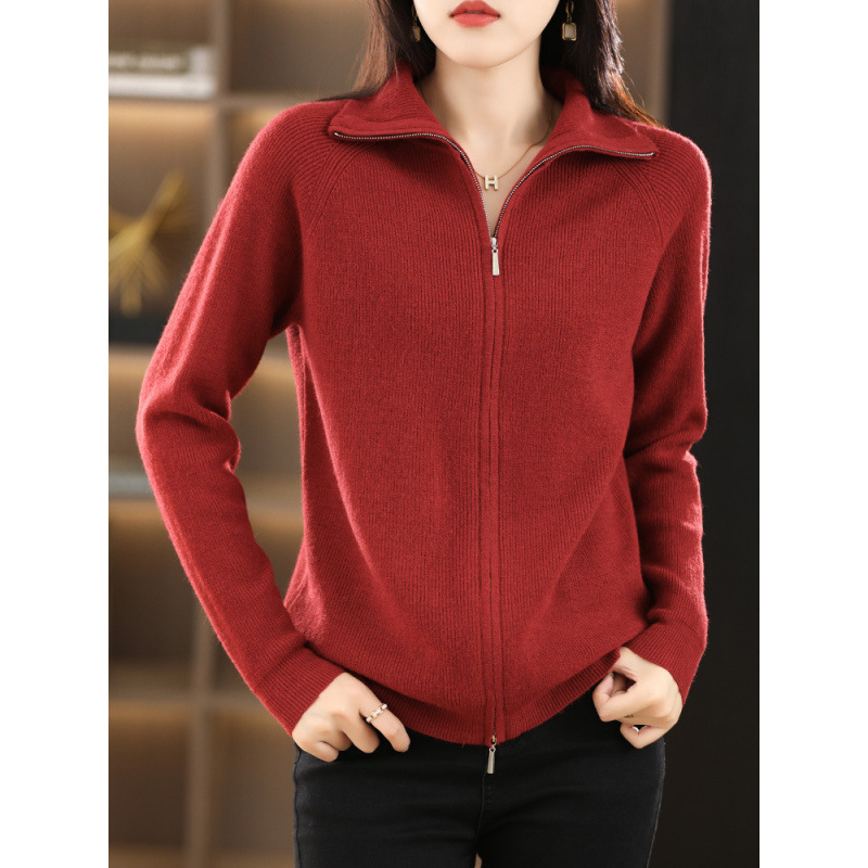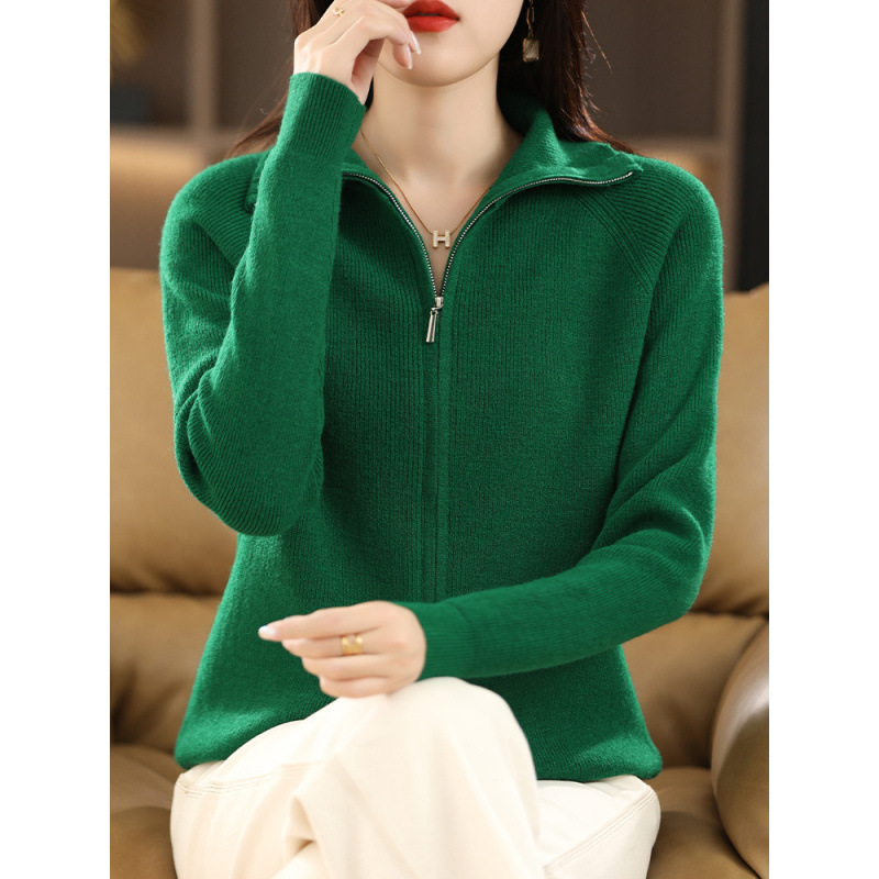 Главная страница > 2023 осень-зима новый трикотажный кардиган женский полувысокий воротник с длинным рукавом свитер на молнии куртка свободно повседневный топ утолщение
