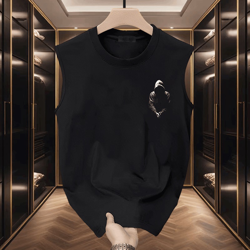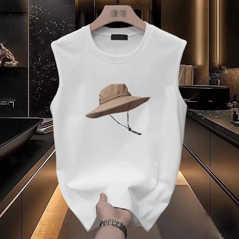 Главная страница > Летняя модная брендовая рубашка без рукавов с круглым вырезом, жилет, мужской жилет в американском стиле, креативный свободный топ с принтом для фитнеса
