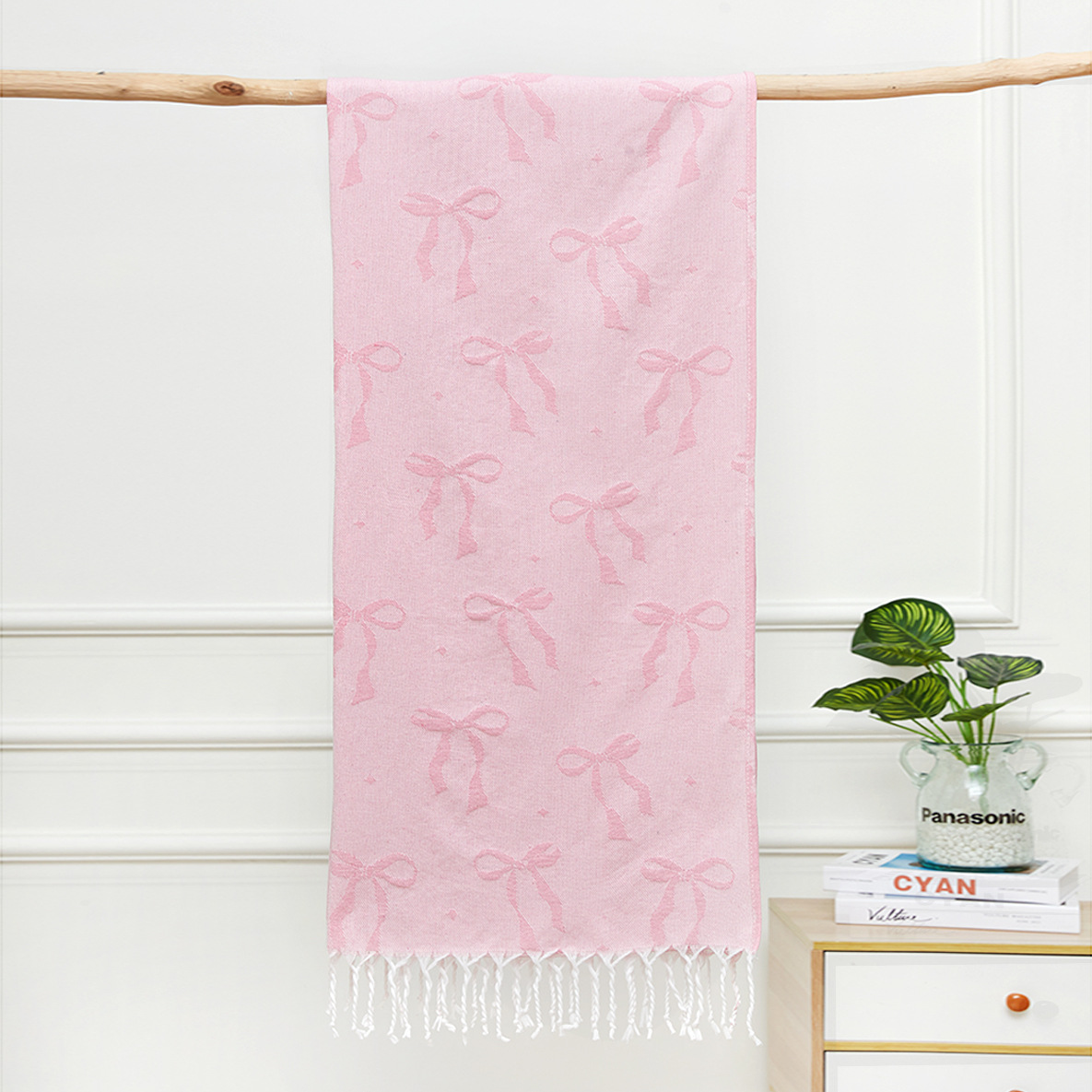 Производитель жаккардовых полотенец из полиэфирного хлопка, турецких пляжных полотенец с бантом, банных полотенец, пляжных одеял с кисточками и бантом для улицы