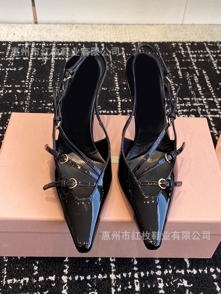 Главная страница > Высокие босоножки на шпильке из натуральной кожи Miu 2025 для женщин с однорядной пряжкой, кошачьим каблуком и заостренным носком.