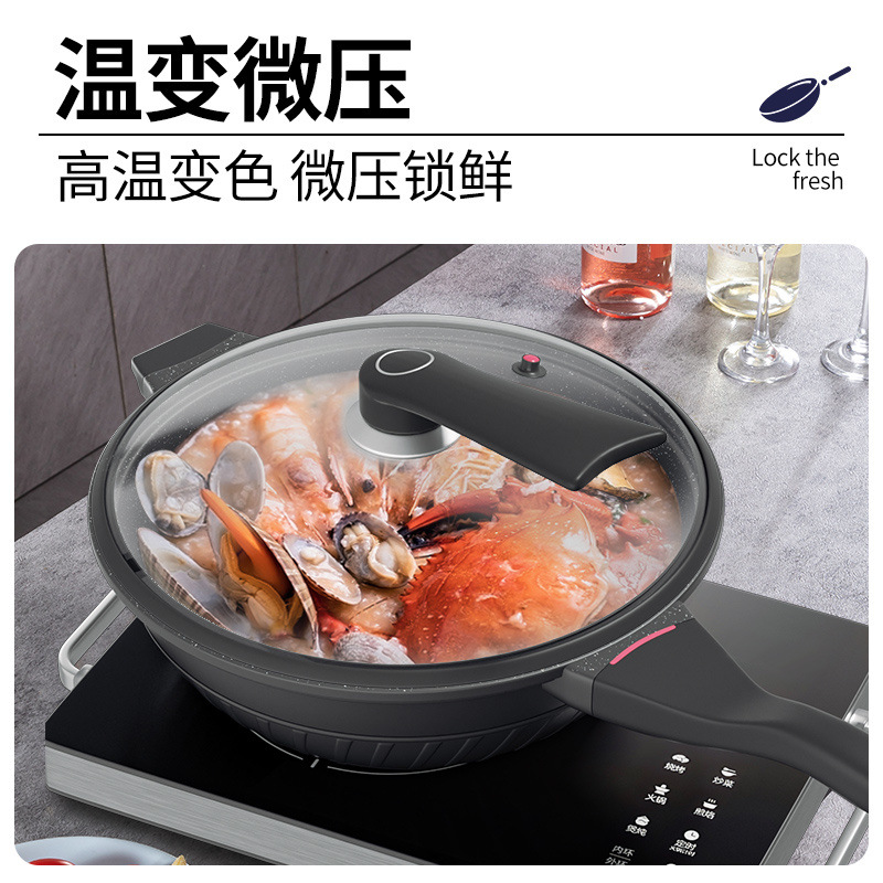 Главная страница > Mai Fan Stone Woan Not Pot Court Безмасляный дым вок Горячая плита индукционная газовая плита Универсальная сковорода Легкая сетка красная сковорода