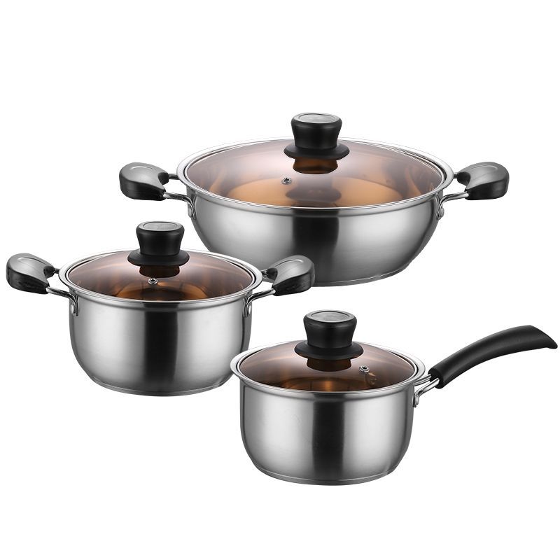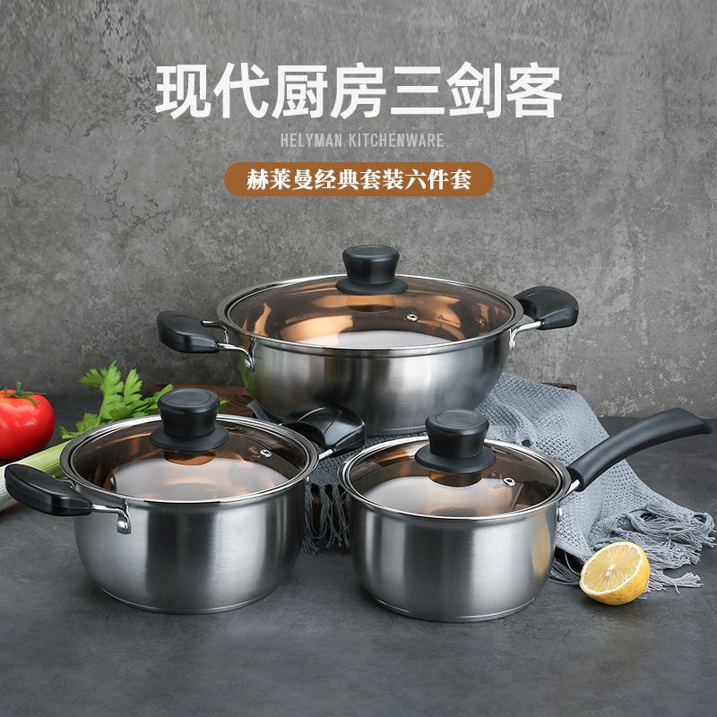 Набор посуды из нержавеющей стали, кастрюля для супа, молочник, сковорода, комбинированный набор, упаковка в цветной коробке, оптовая продажа, выгодная цена, полезный для здоровья, без покрытия.