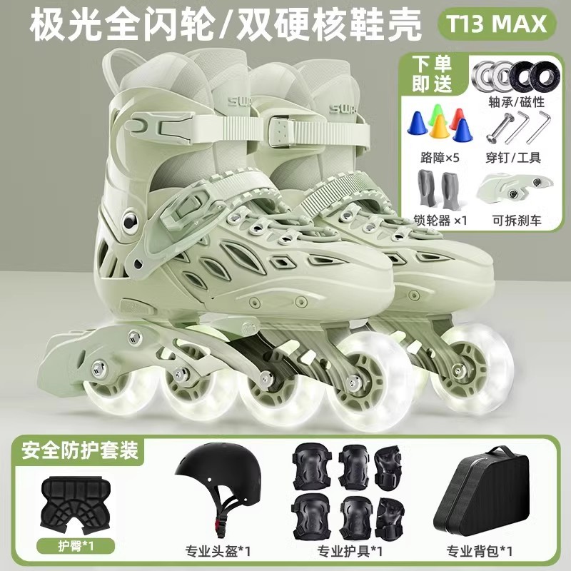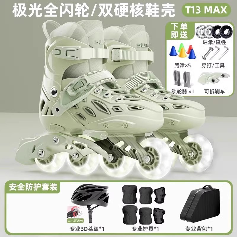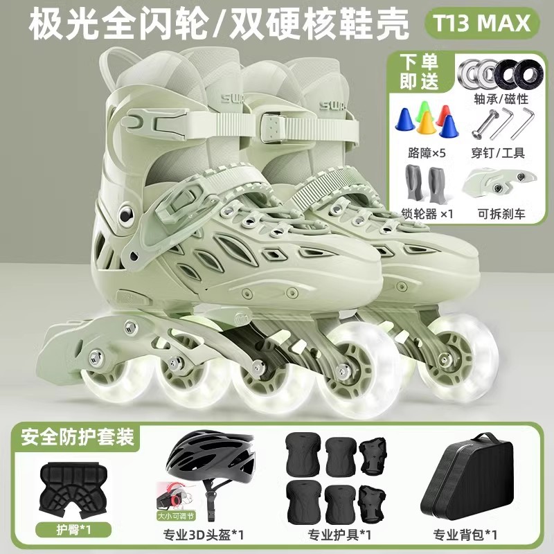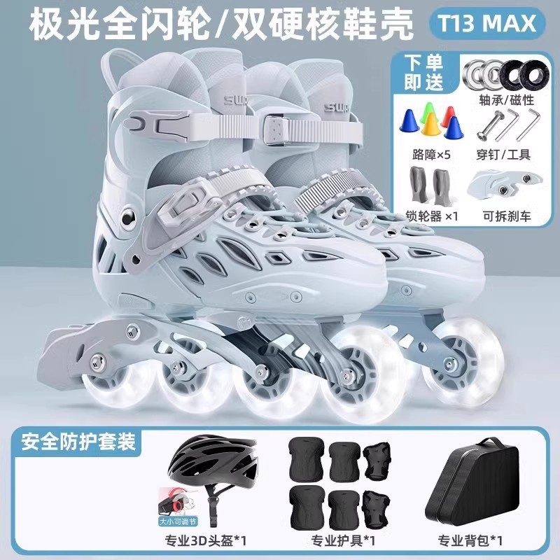 Новая модель 2025 года — Lake Blue [пряжка с двойной планкой + встроенный кронштейн из сплава] оригинальное защитное снаряжение + шлем + сумка + защита бедер + фиксирующее колесо для начинающих