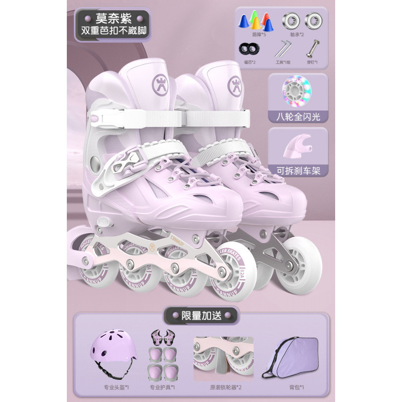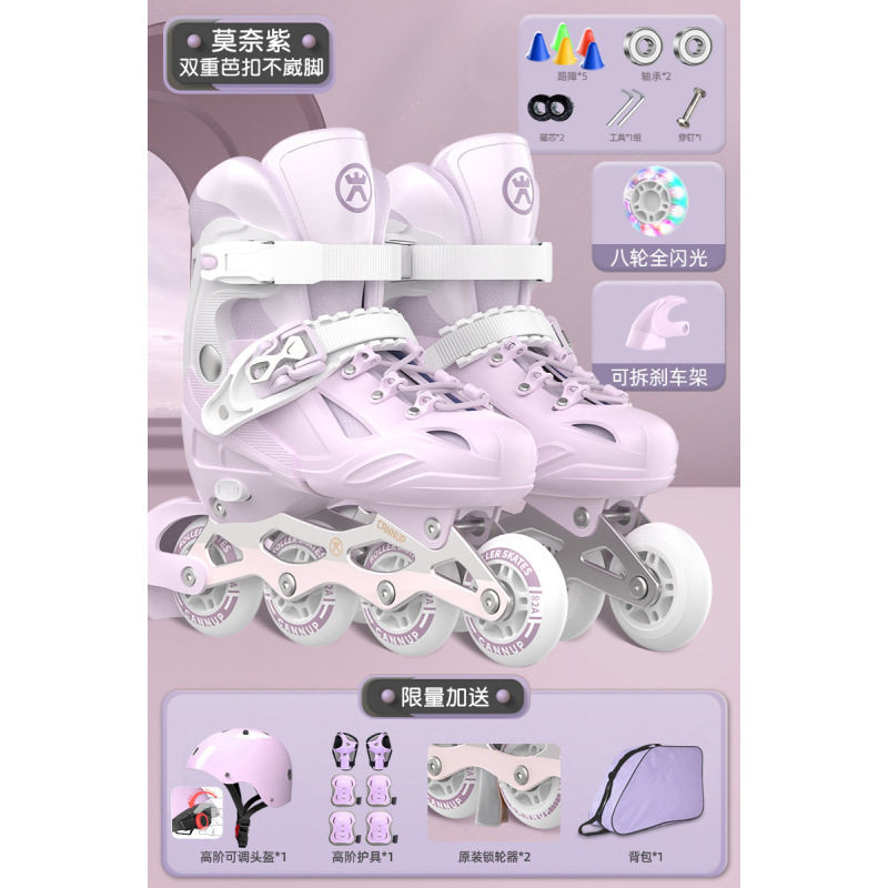 Новичок · Защита от падения [Фиолетовый · Двойная пряжка не поворачивает ноги] Защита шлема + рюкзак + замок на колесо