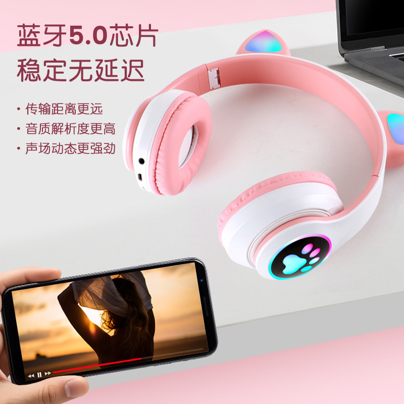 Главная страница > Новые беспроводные Bluetooth-наушники STN-28 для девочек с подсветкой в виде кошачьих ушек, складные, для спорта и игр