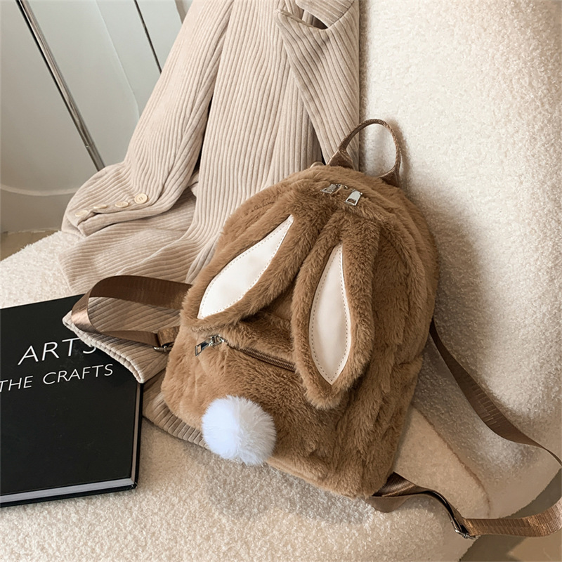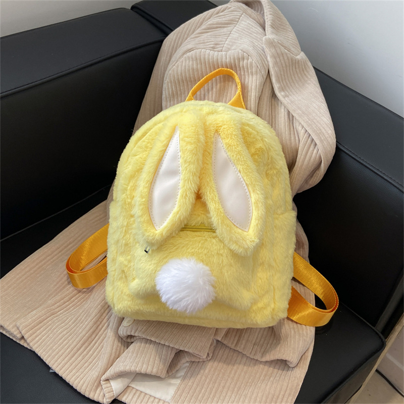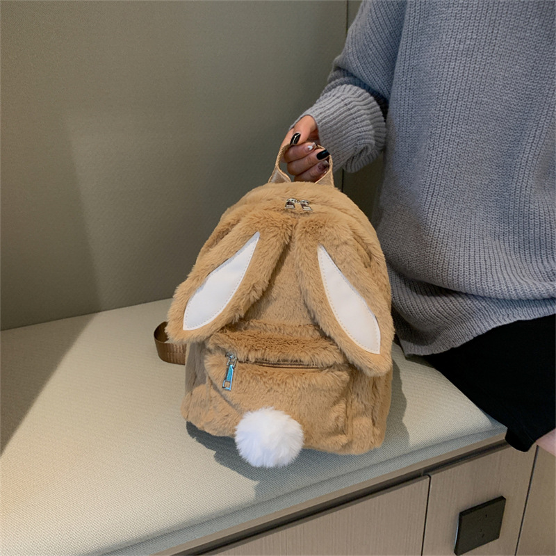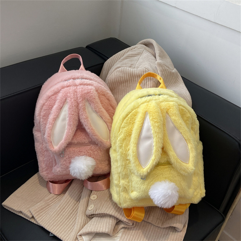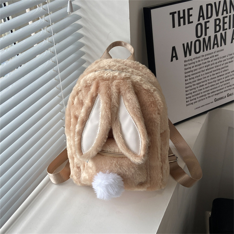 Главная страница > [Трансграничный новый стиль] меховая сумка с кроличьими ушками осенне-зимняя сумка на плечо с мультяшным Кроликом, милый однотонный плюшевый маленький рюкзак