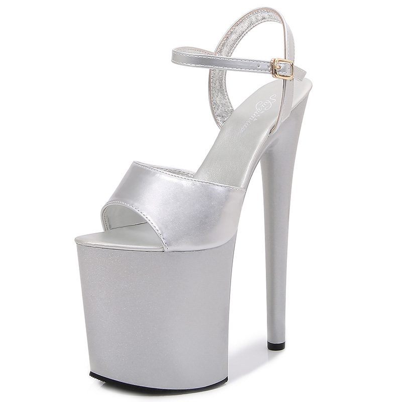 Главная страница > Лакированная кожа 20 см специальные высокие каблуки шпильки сексуальный рыбий рот Толстая Нижняя платформа Ненависть небо высокие супер высокие сандалии для лета