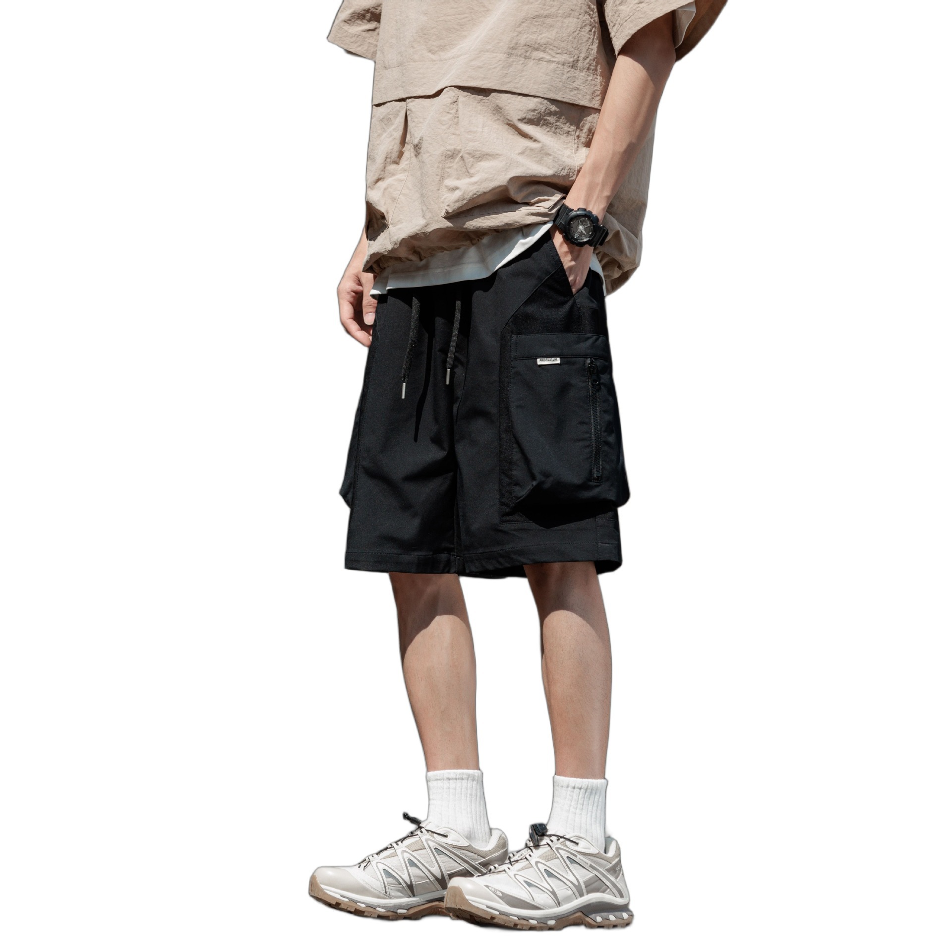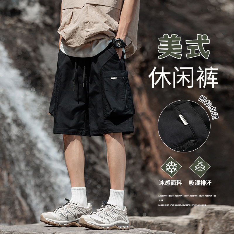 Главная страница > Быстросохнущие мужские шорты-карго в стиле пэчворк, летние тонкие модные свободные дышащие повседневные шорты средней длины в американском стиле.