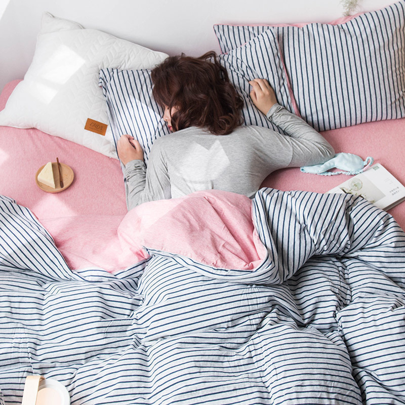 Главная страница > Оригинальный ультрамягкий трикотажный хлопковый комплект Muji из трех или четырех предметов, окрашенный в пряже чистый хлопок, качественный хлопковый пододеяльник и простыня из хлопкового джерси для общежития.