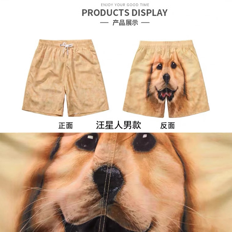 Шорты с золотыми перьями, забавные Мужские Пляжные штаны, дышащая Домашняя одежда с мультяшным принтом, модные парные шорты с собачьей головой, модные