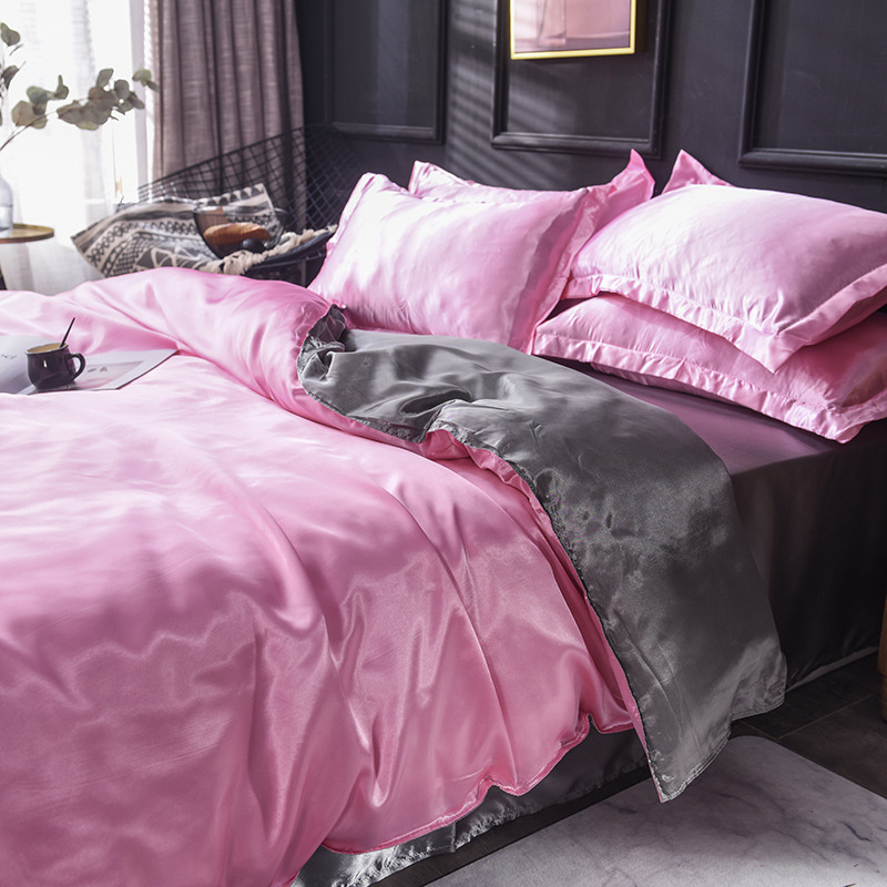 Трансграничный Amazon Silk Ice Silk Комплект из четырех предметов Летняя моющаяся шелковая простыня Комплект из четырех предметов Постельное белье