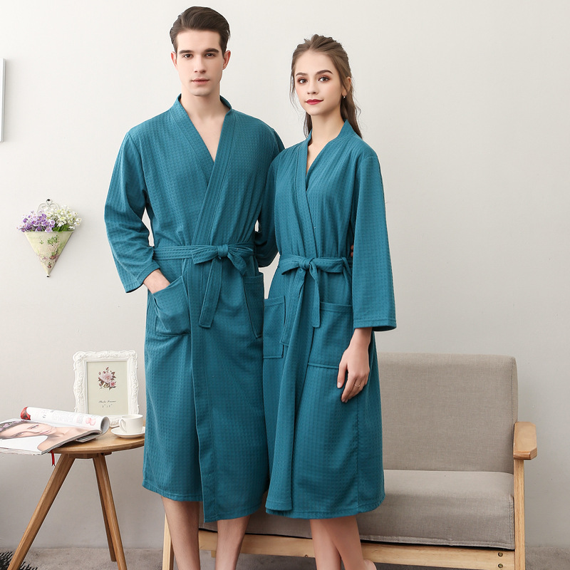 Главная страница > Летний тонкий вафельный халат для пар, мужской и женский, с рукавом три четверти, в корейском стиле, впитывающий, как полотенце